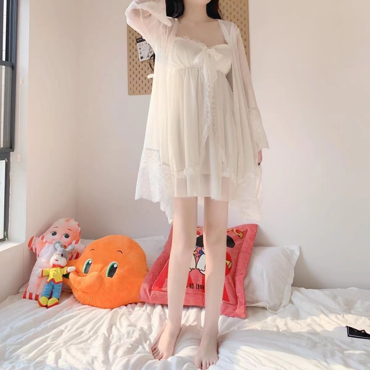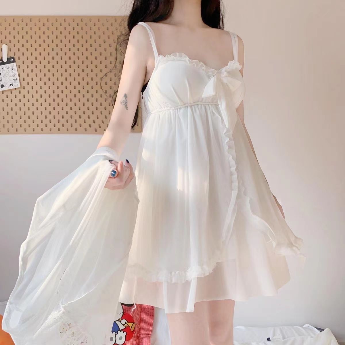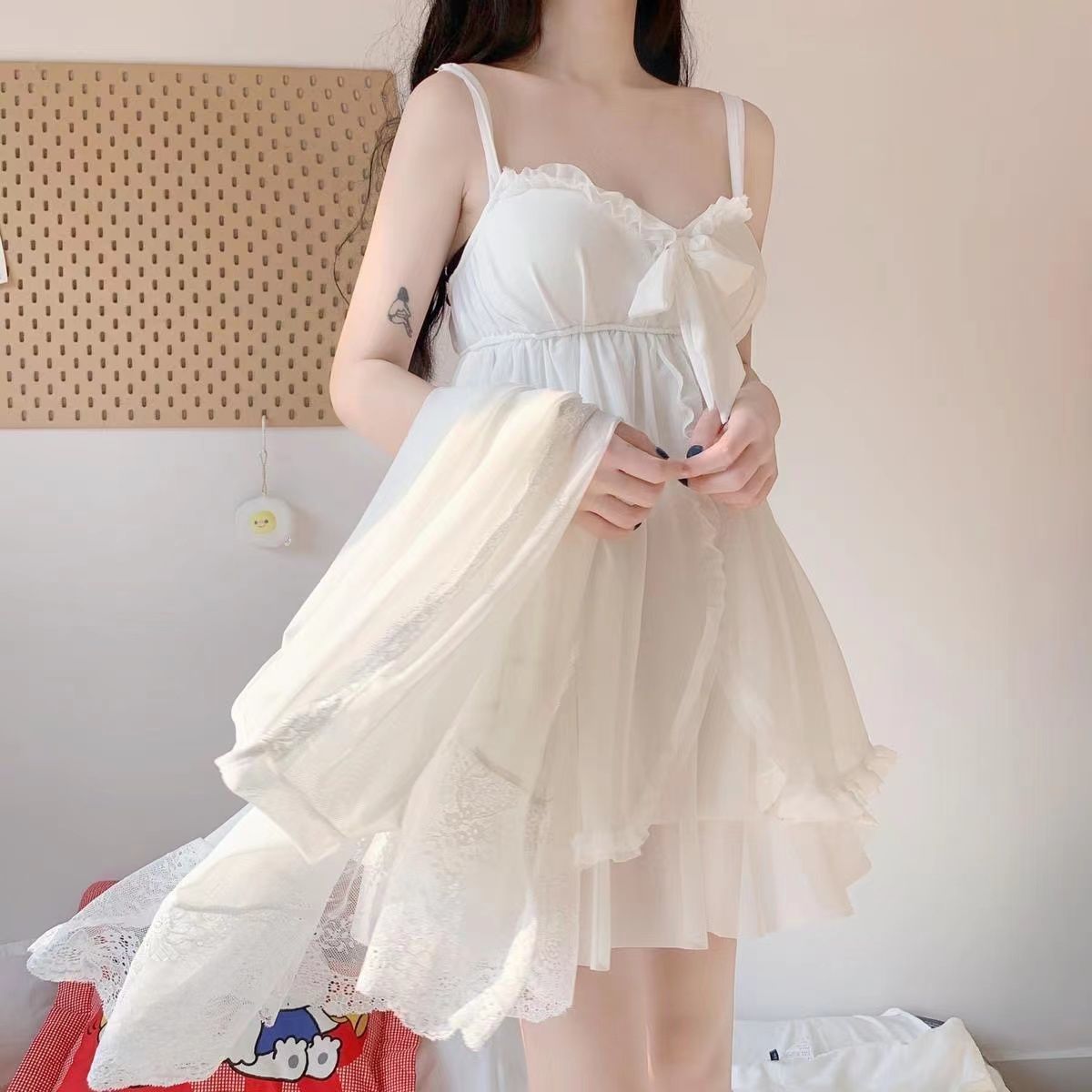 짧은 복고풍 달콤한 궁전 스타일 레이스 잠옷 여성 봄, 가을 슬림 한국 스타일 여름 서스펜더 잠옷 홈웨어스토어 가기