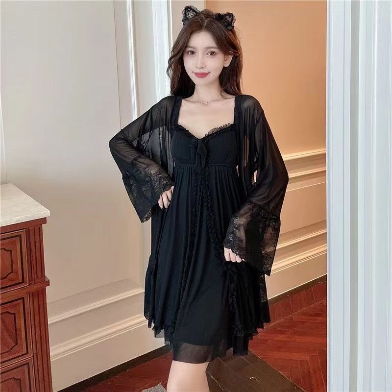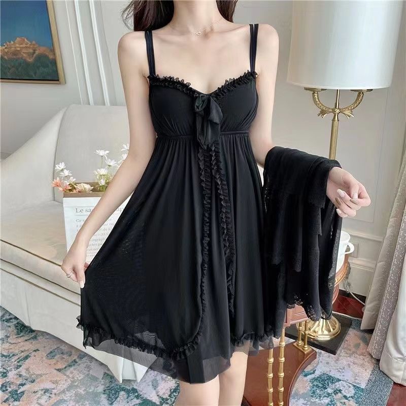짧은 복고풍 달콤한 궁전 스타일 레이스 잠옷 여성 봄, 가을 슬림 한국 스타일 여름 서스펜더 잠옷 홈웨어
