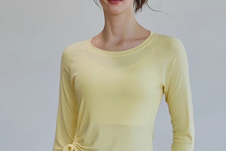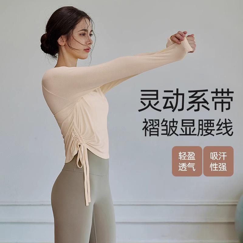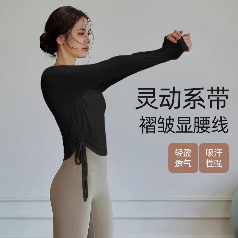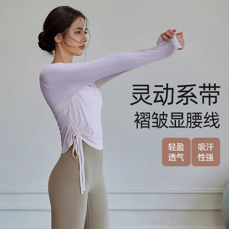 피부 친화적 인 통기성 피트니스 의류 스포츠 슬림핏 슬리밍 긴팔 요가 옷베이스 셔츠 끈 티셔츠 필라테스 블라우스스토어 가기