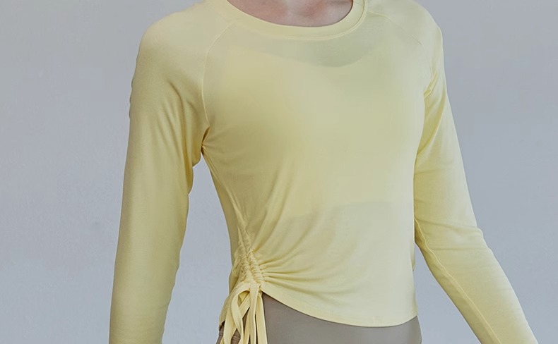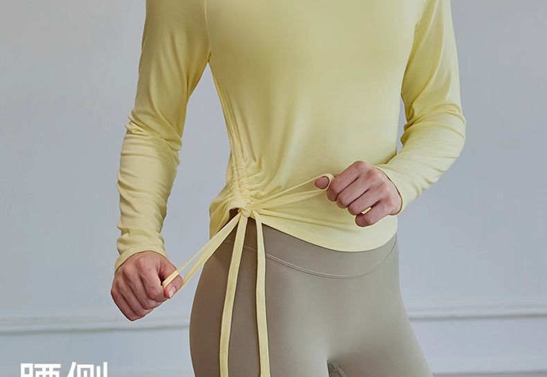 피부 친화적 인 통기성 피트니스 의류 스포츠 슬림핏 슬리밍 긴팔 요가 옷베이스 셔츠 끈 티셔츠 필라테스 블라우스