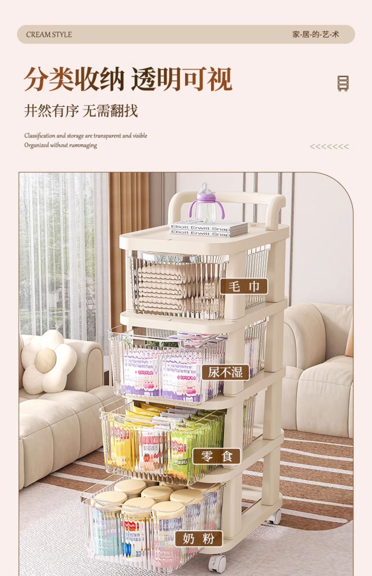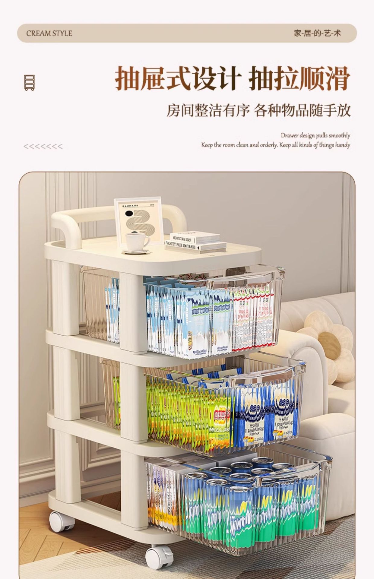 트롤리 스토리지 랙 바닥 서 서랍 형 스낵 선반 가정용 다층 베이비 스토리지 장난감 잡화 보관 캐비닛