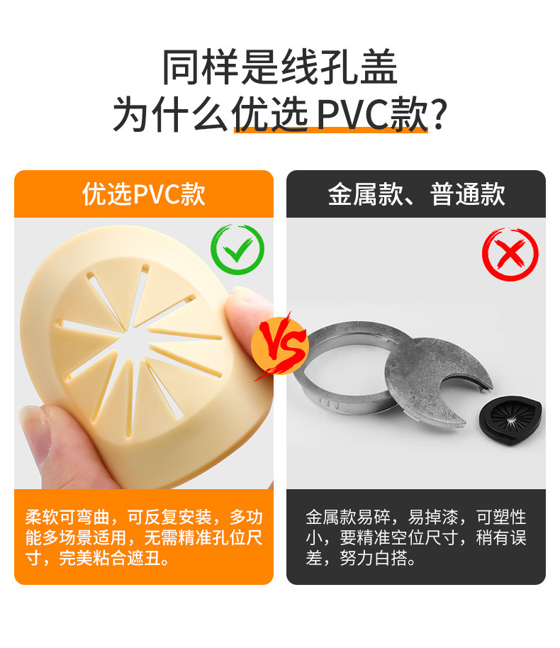 컴퓨터 책상 와이어 홀 커버 PVC 플라스틱 페이스트 데스크 구멍 스레딩 커버 사무실 책상 라운드 미터 모양의 장식 와이어 박스스토어 가기