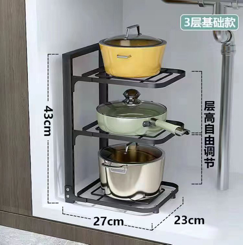 주방 조절식 다층 냄비 선반 수납대 싱크대 아래 테이블 모서리에 냄비를 놓을 수 있으며 설치 필요 없음