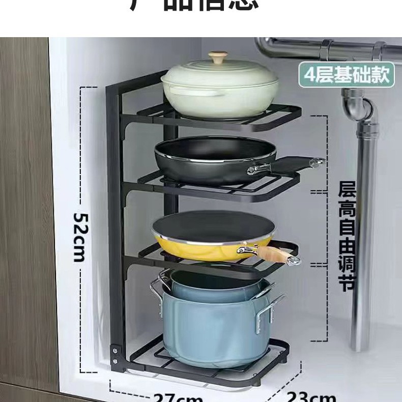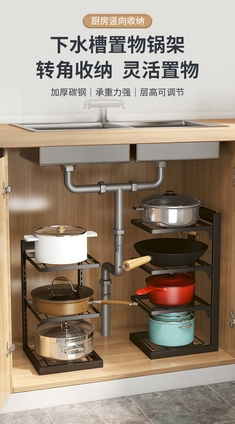 주방 조절식 다층 냄비 선반 수납대 싱크대 아래 테이블 모서리에 냄비를 놓을 수 있으며 설치 필요 없음스토어 가기