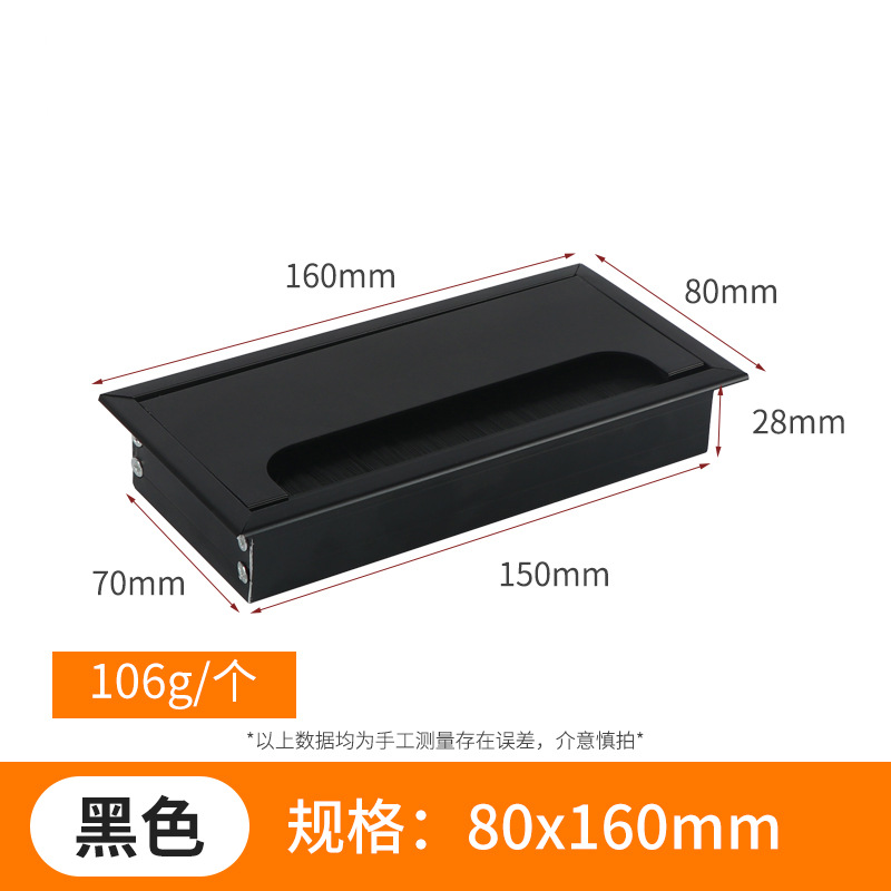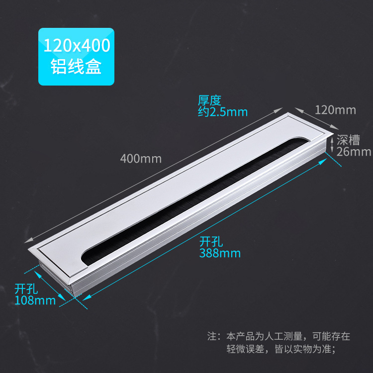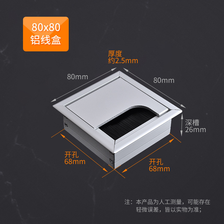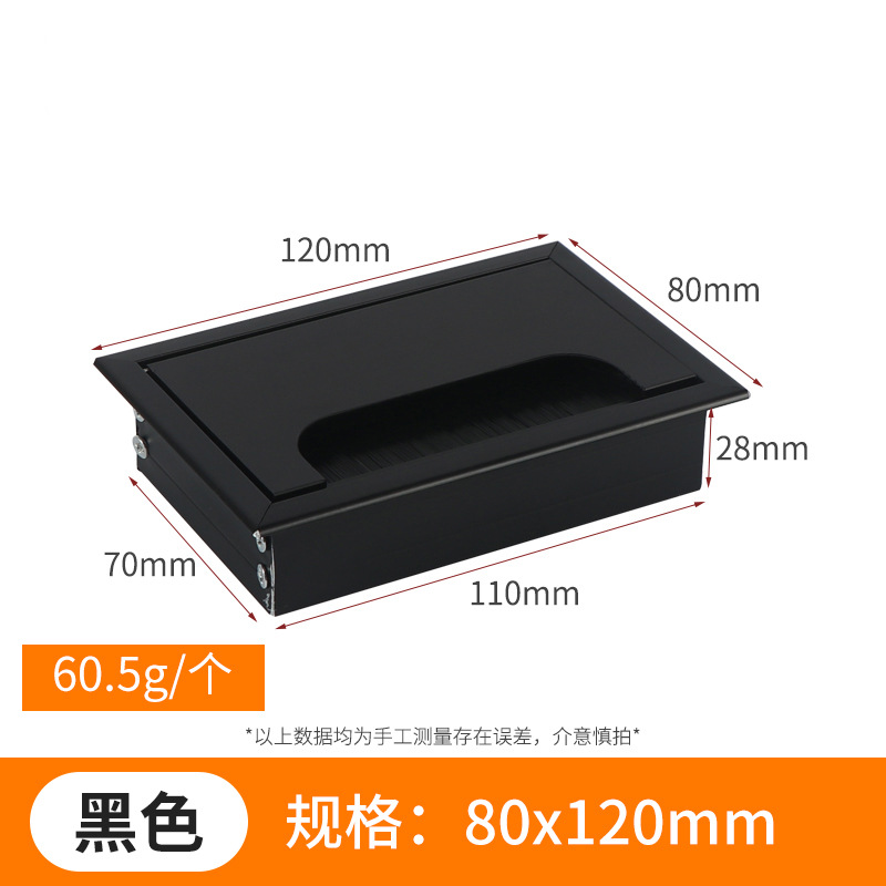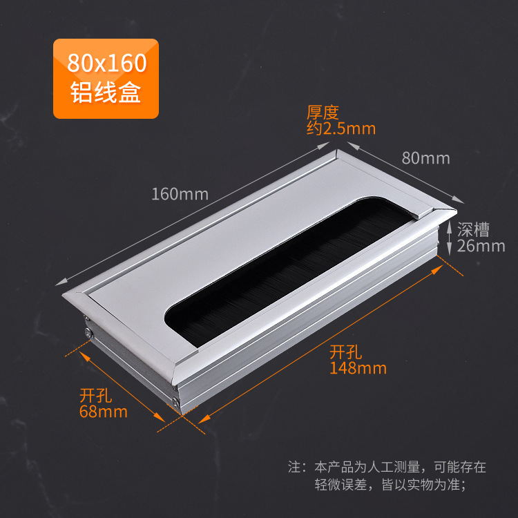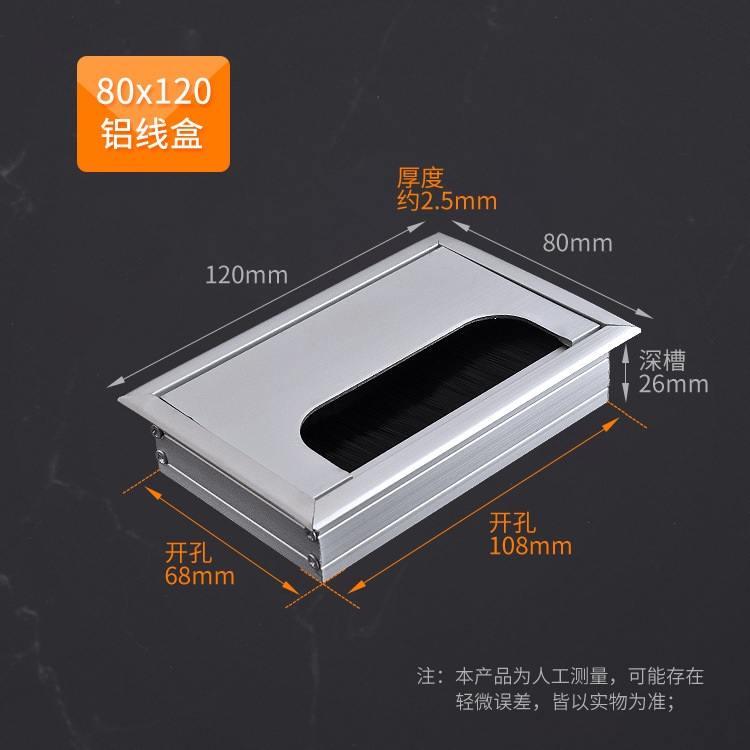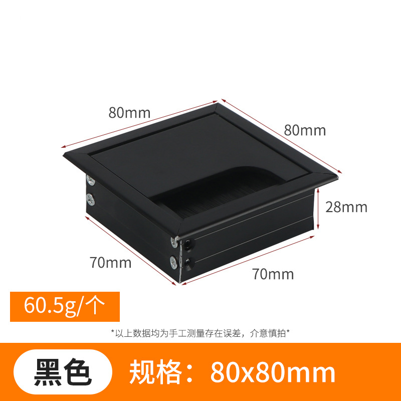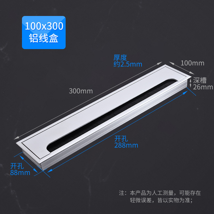 스퀘어 컴퓨터 데스크 와이어 박스 알루미늄 합금 데스크 브러시 스레딩 홀 커버 회의 테이블 실버 장식 와이어 박스스토어 가기