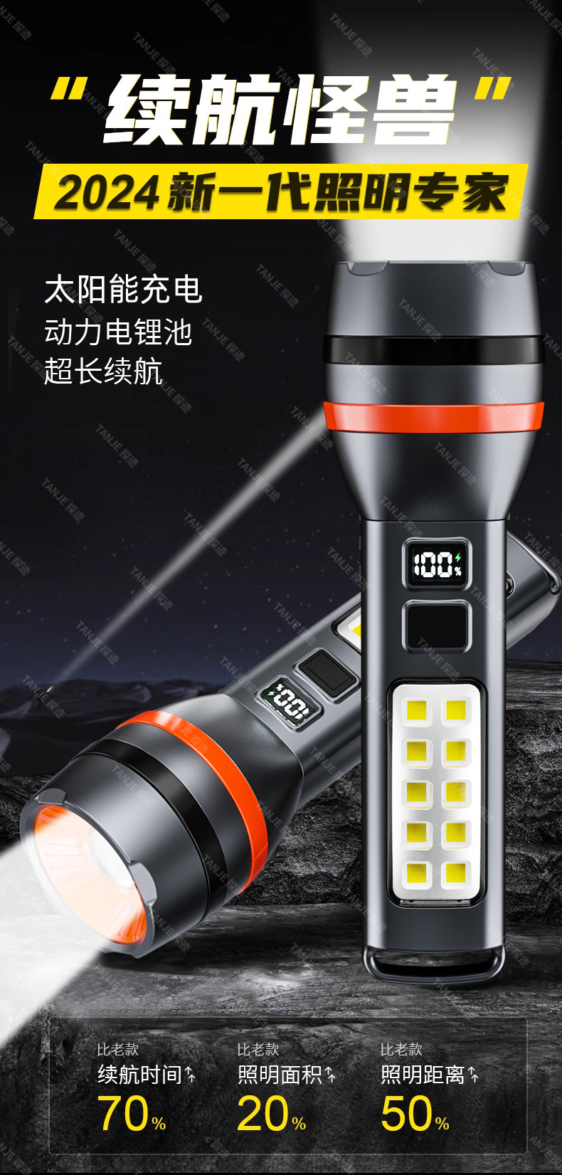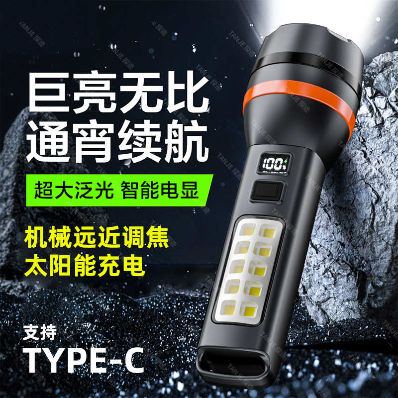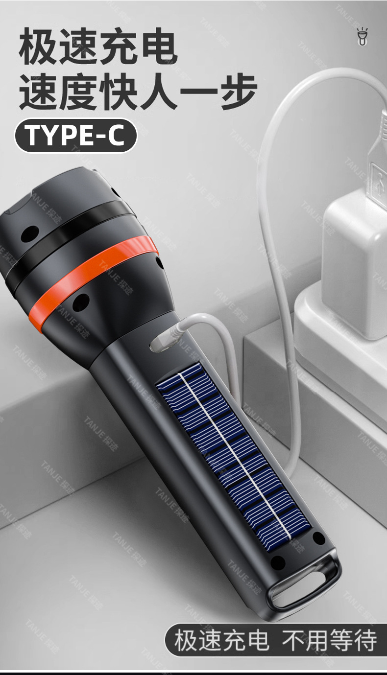 태양 손전등 강한 빛 장거리 휴대용 충전식 가정용 조명 검색 등 비상 야외 슈퍼 긴 대기