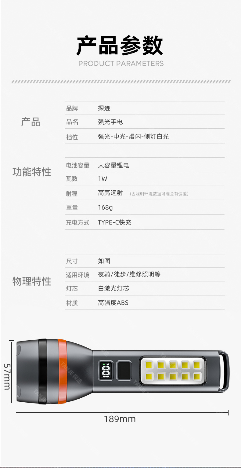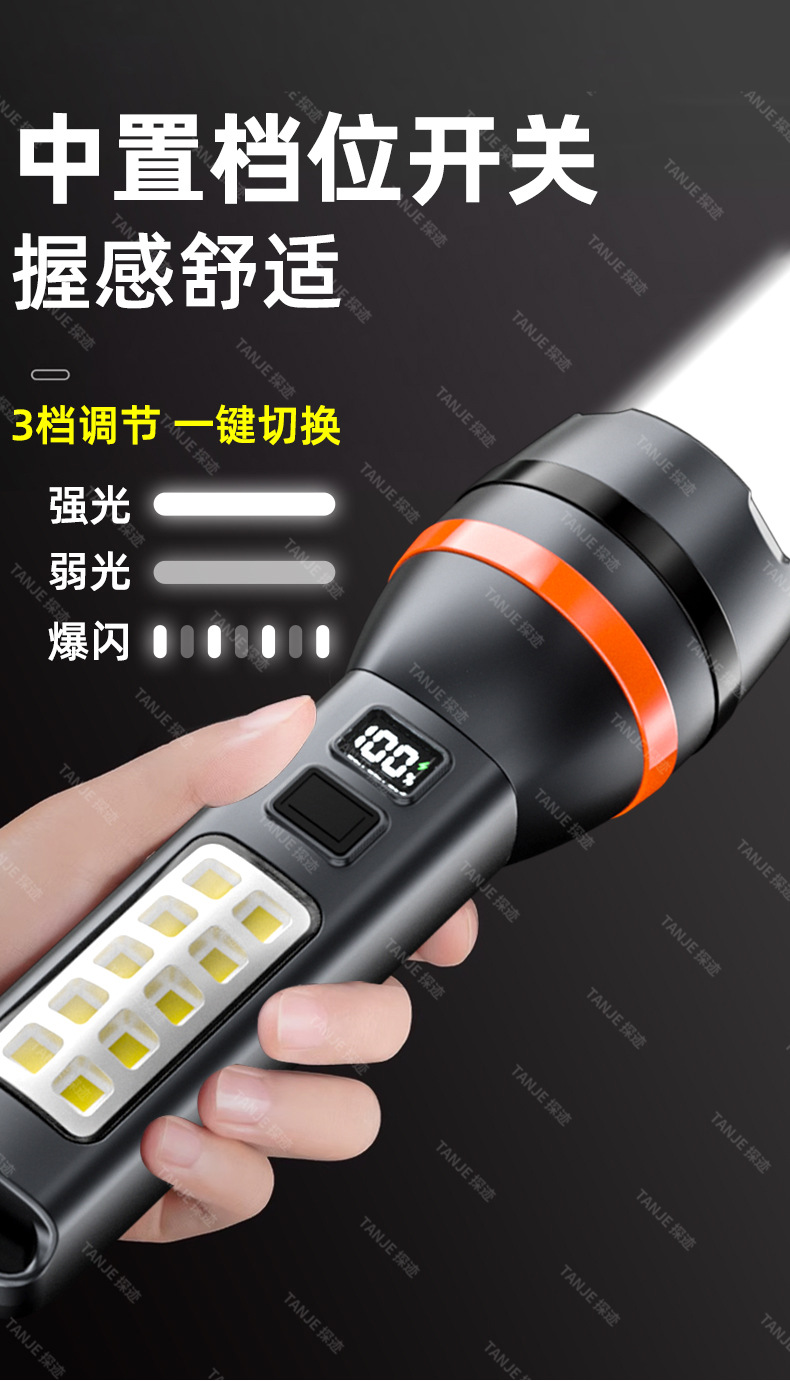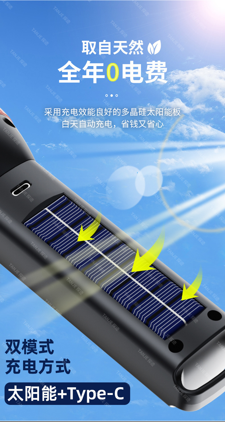 태양 손전등 강한 빛 장거리 휴대용 충전식 가정용 조명 검색 등 비상 야외 슈퍼 긴 대기