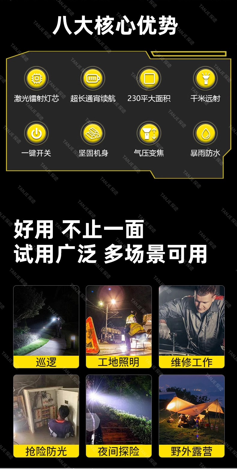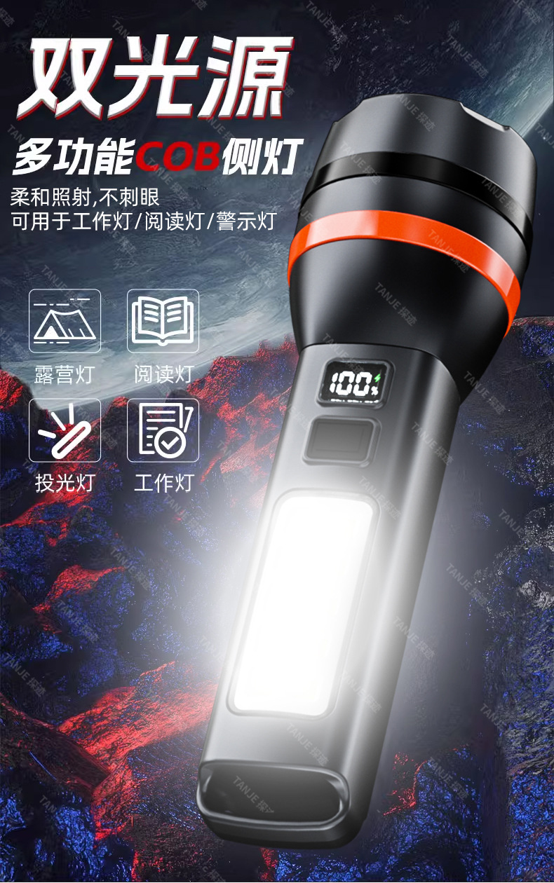 태양 손전등 강한 빛 장거리 휴대용 충전식 가정용 조명 검색 등 비상 야외 슈퍼 긴 대기스토어 가기