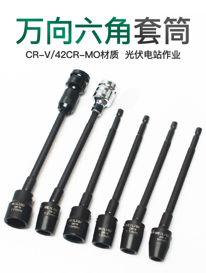 유니버설 육각 소켓 렌치 바람 배치 전기 렌치 연장 소켓 헤드 코너 조향 태양 광 설치 13mm