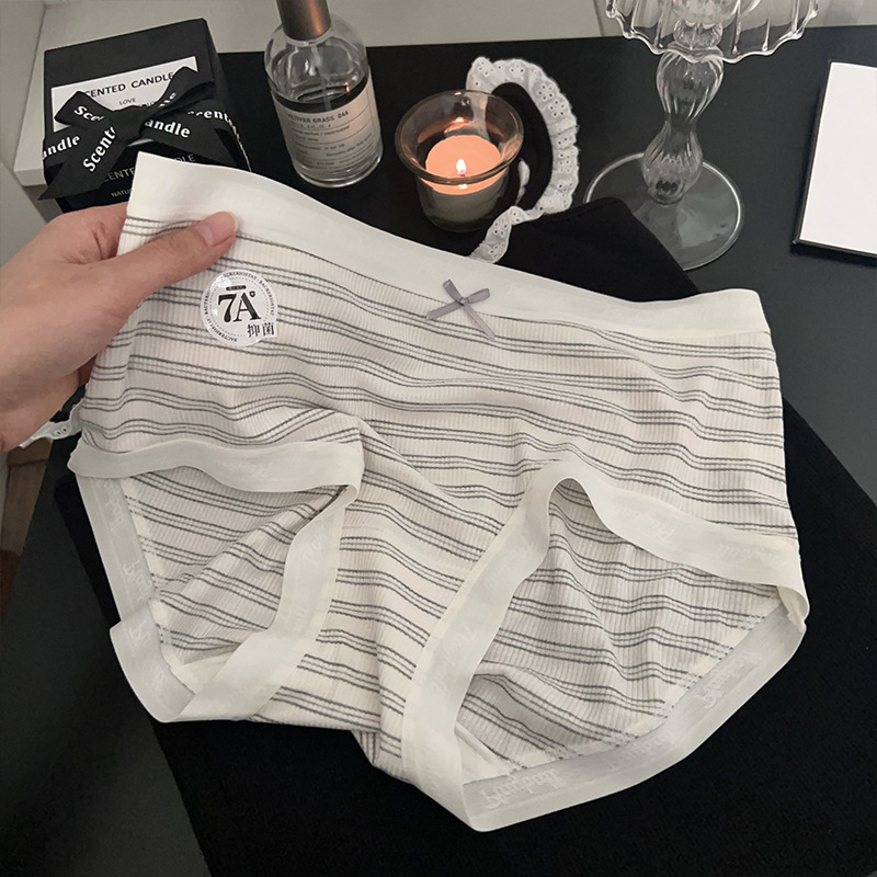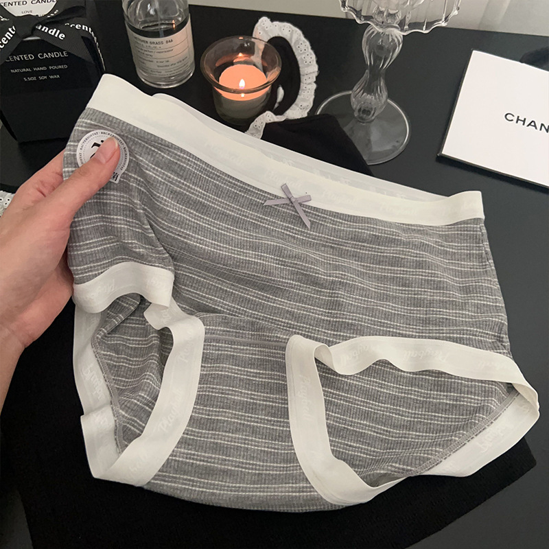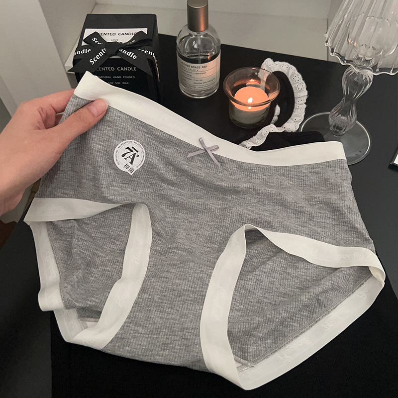 복숭아 도나 일본 스타일 간단한 클래식 회색 소녀 높은 탄성 편안한 통기성 바닥 크로트 여성을위한 중간 허리 브리프스토어 가기