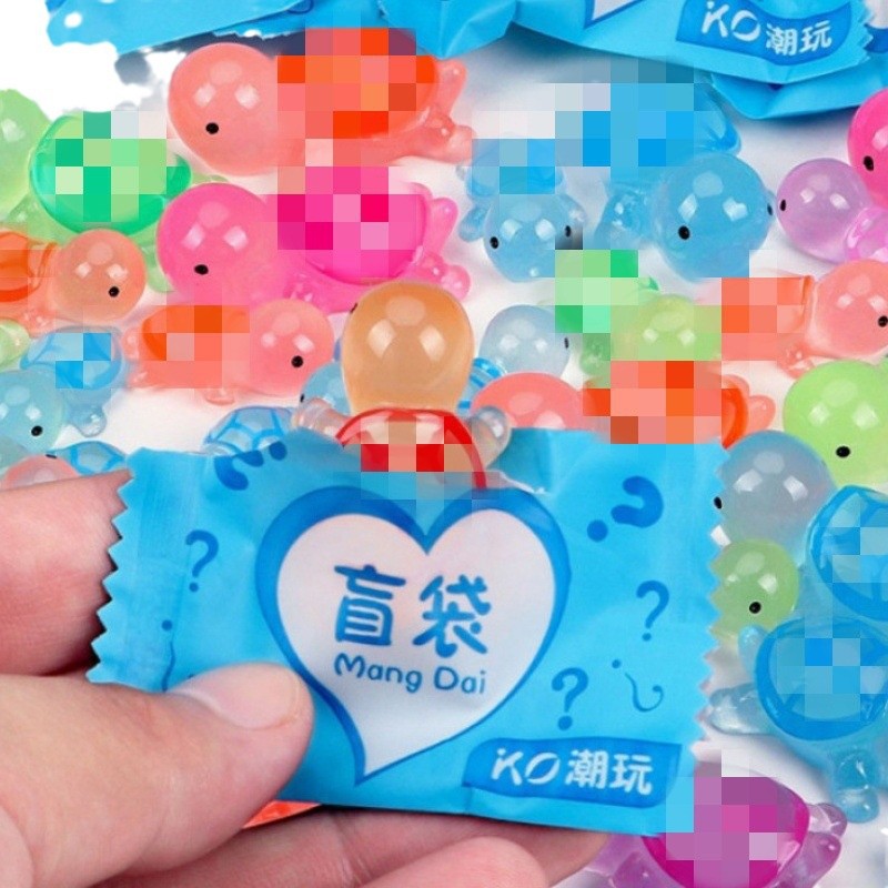 만화 블라인드 가방 빛나는 작은 거북이 쌍 터치 장난감 모델 장식품 인형 거북이 빛나는 동물 블라인드 박스 인형