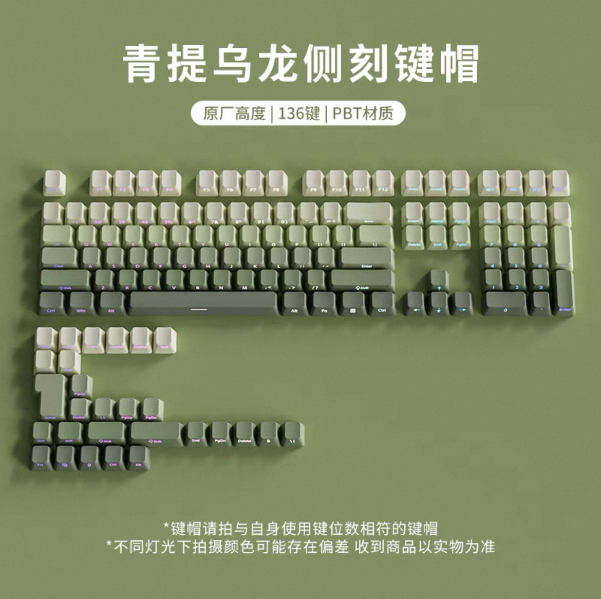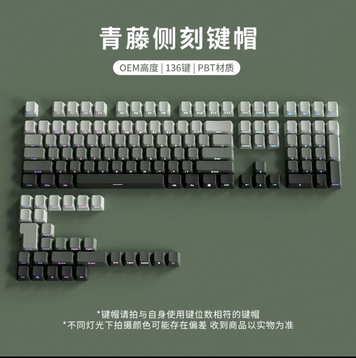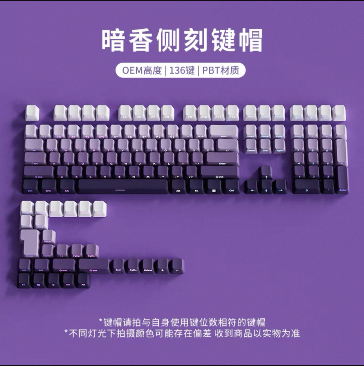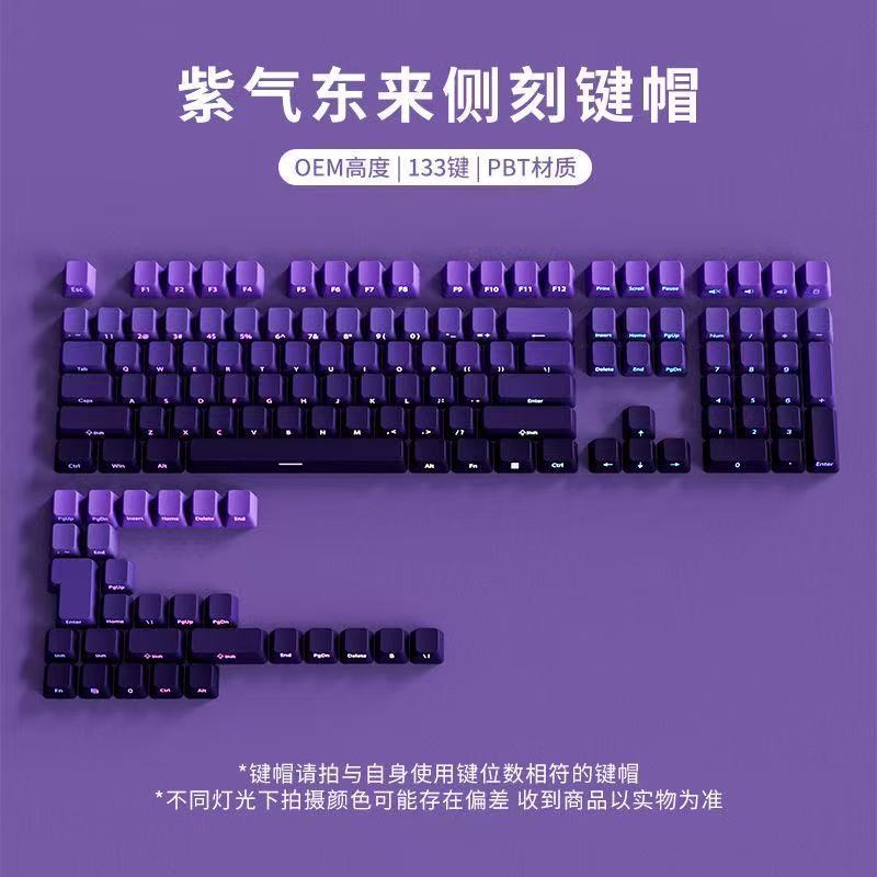 극광 측면 각인 투광 키캡 PBT 마이크로 샌딩 표면 133키 딥 다이 염색 6색 그라데이션 개성적 기계식 키보드 호환