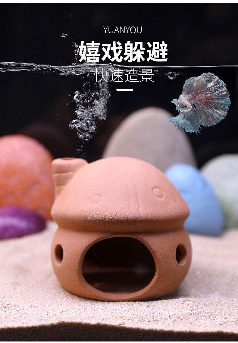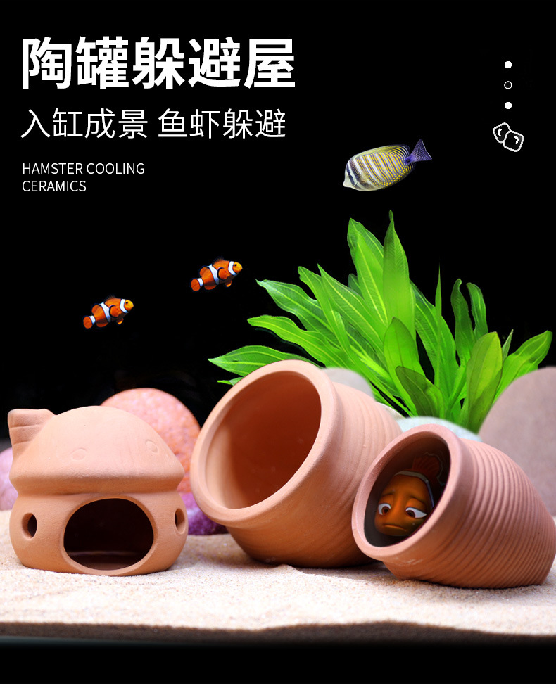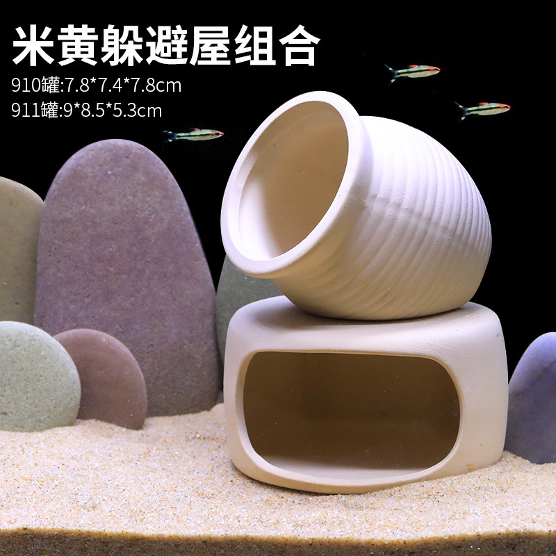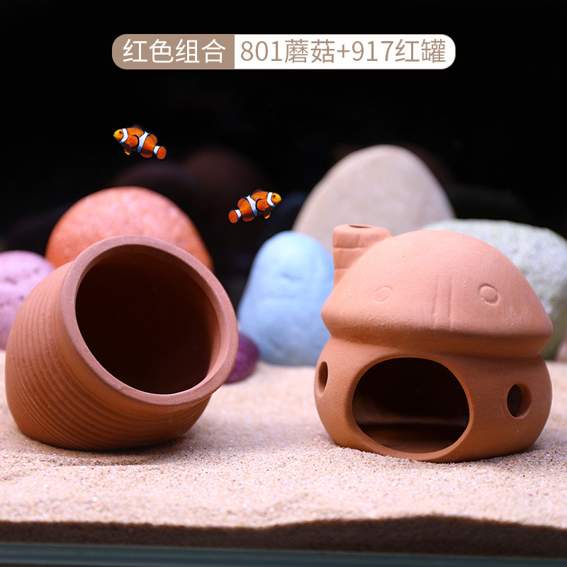 국경을 넘는 어항 도자기 항아리 은신처 조경 미니 앵무새 티아라피도르 보라색 점토 번식 항아리 낳는 장소 물고기 새우 둥지 은신처스토어 가기