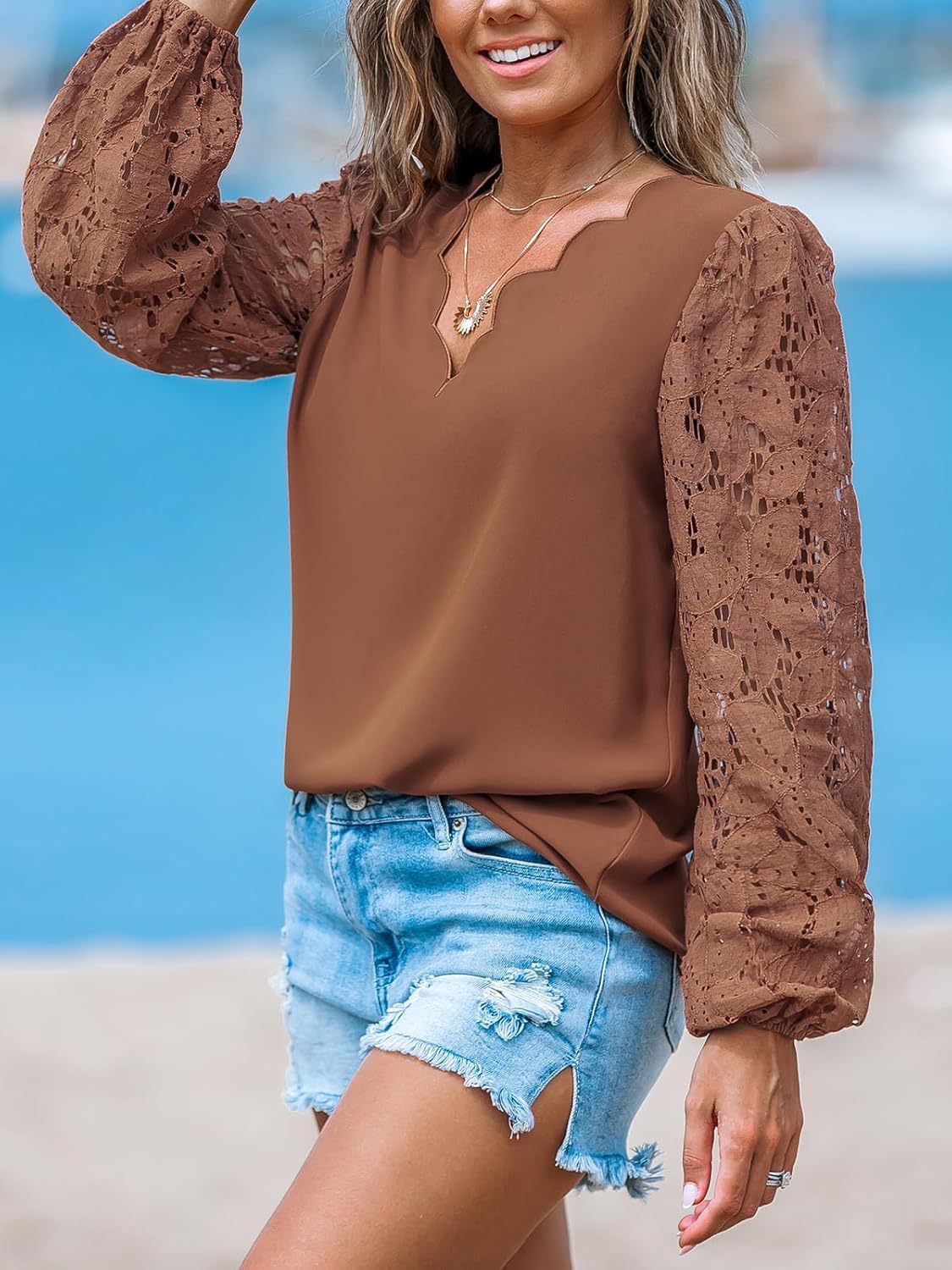 아마존 독립 역 국경 대외 무역 2024 봄과 여름 새로운 휴가 패션 할로우 긴 소매 유럽과 미국 여성 셔츠