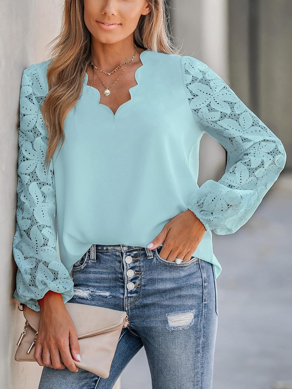 아마존 독립 역 국경 대외 무역 2024 봄과 여름 새로운 휴가 패션 할로우 긴 소매 유럽과 미국 여성 셔츠스토어 가기