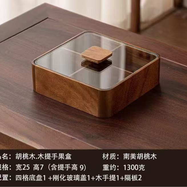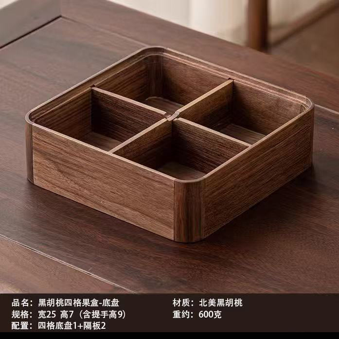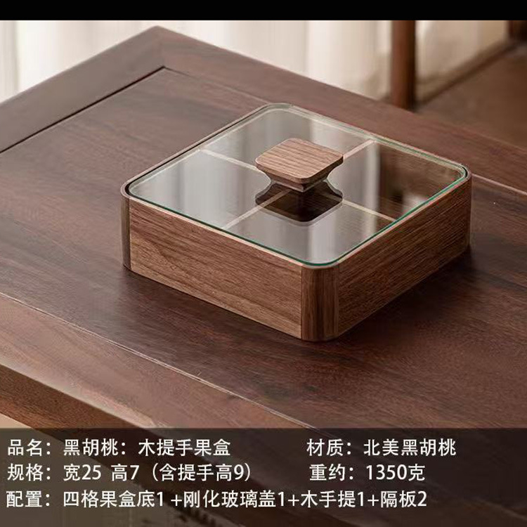 검은 호두 중국 스타일의 단일 레이어 과일 상자 다층 단단한 나무 말린 과일 접시 가정용 거실 너트 상자 나무 식품 상자
