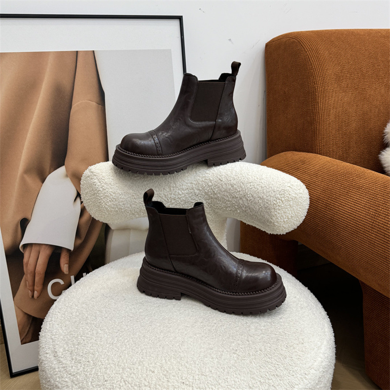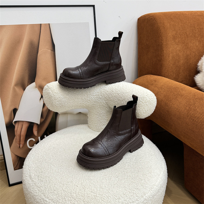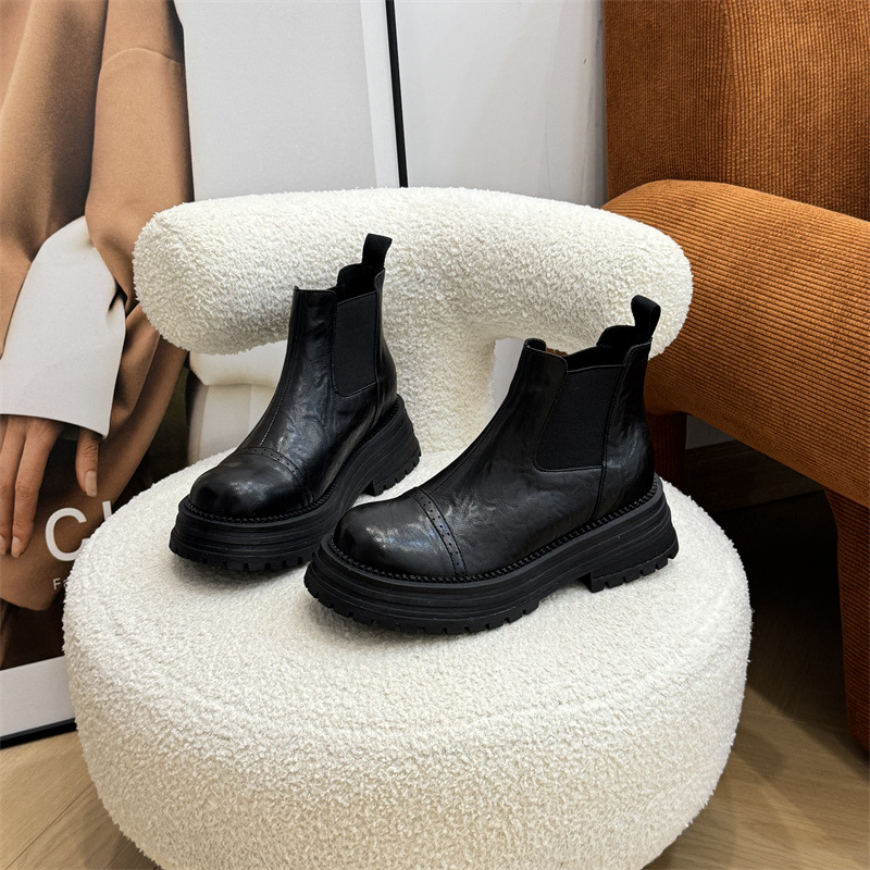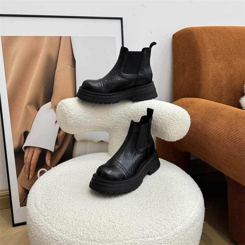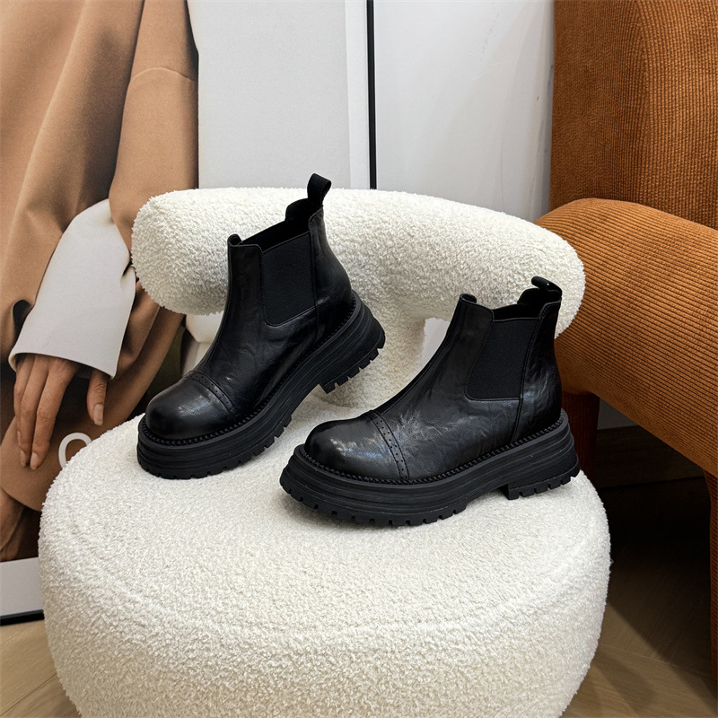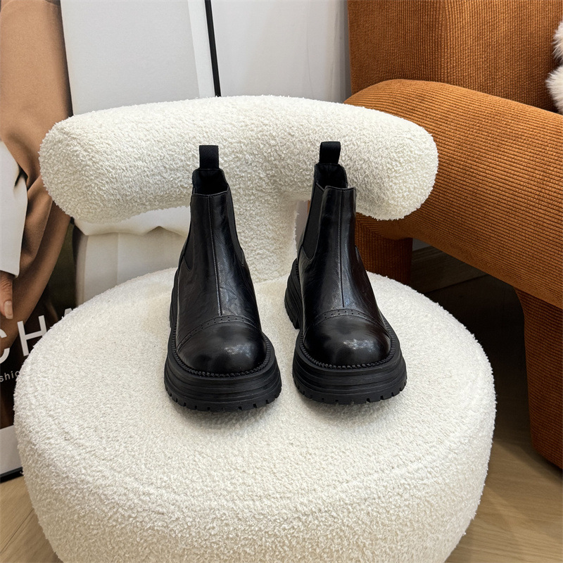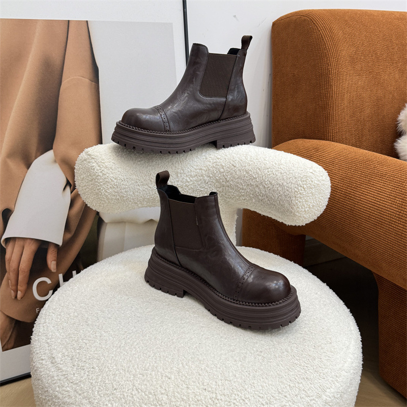 8cm 내부 높이 라운드 헤드 첼시 부츠 여자 2024 가을 영국 스타일 두꺼운 바닥 마틴 부츠 두꺼운 바닥 새로운스토어 가기
