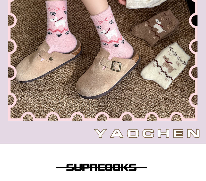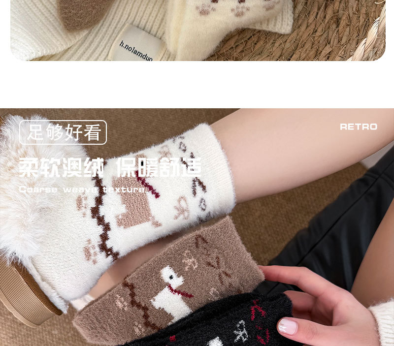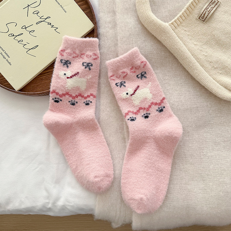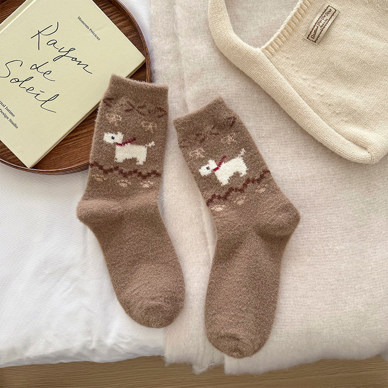 페어아일랜드 인형 양말 새로운 두꺼운 따뜻한 수면 양말 귀여운 강아지 겨울 스타킹 빈티지
