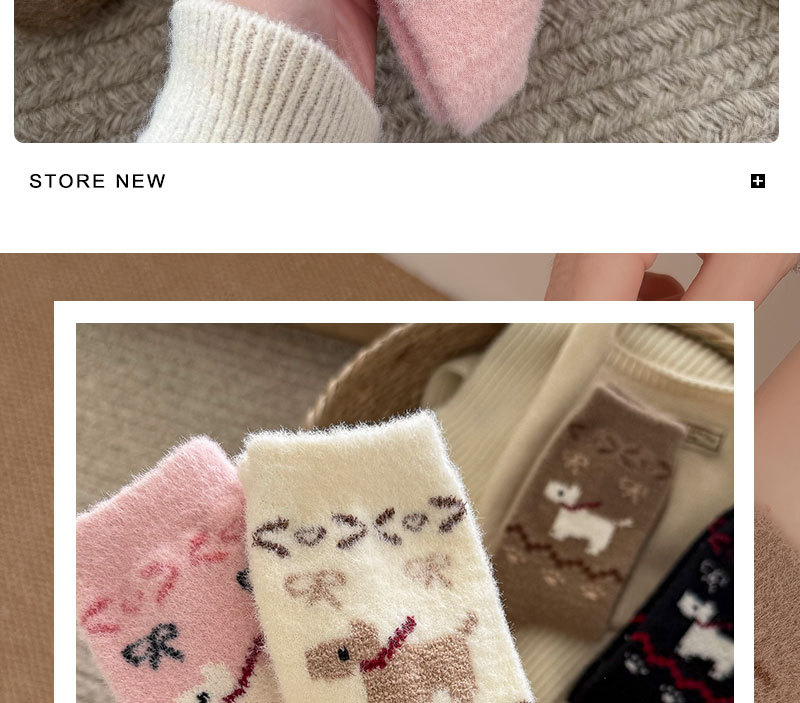페어아일랜드 인형 양말 새로운 두꺼운 따뜻한 수면 양말 귀여운 강아지 겨울 스타킹 빈티지스토어 가기