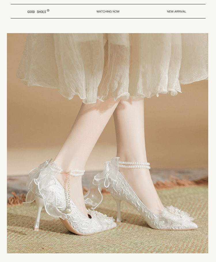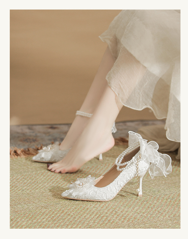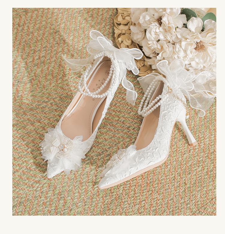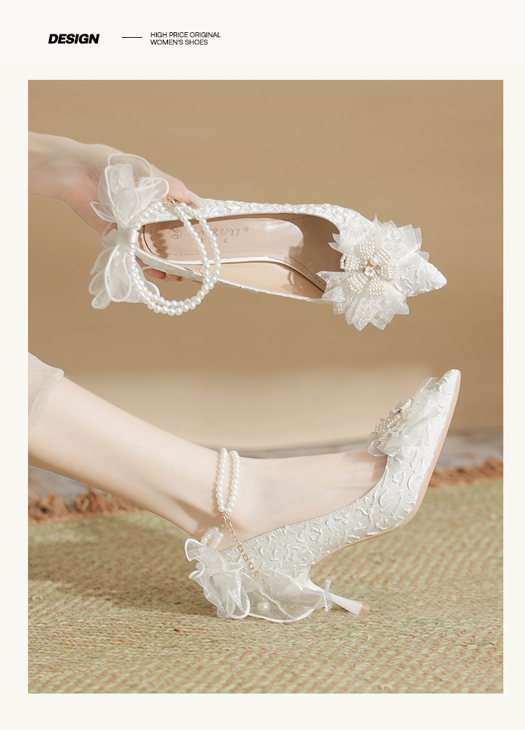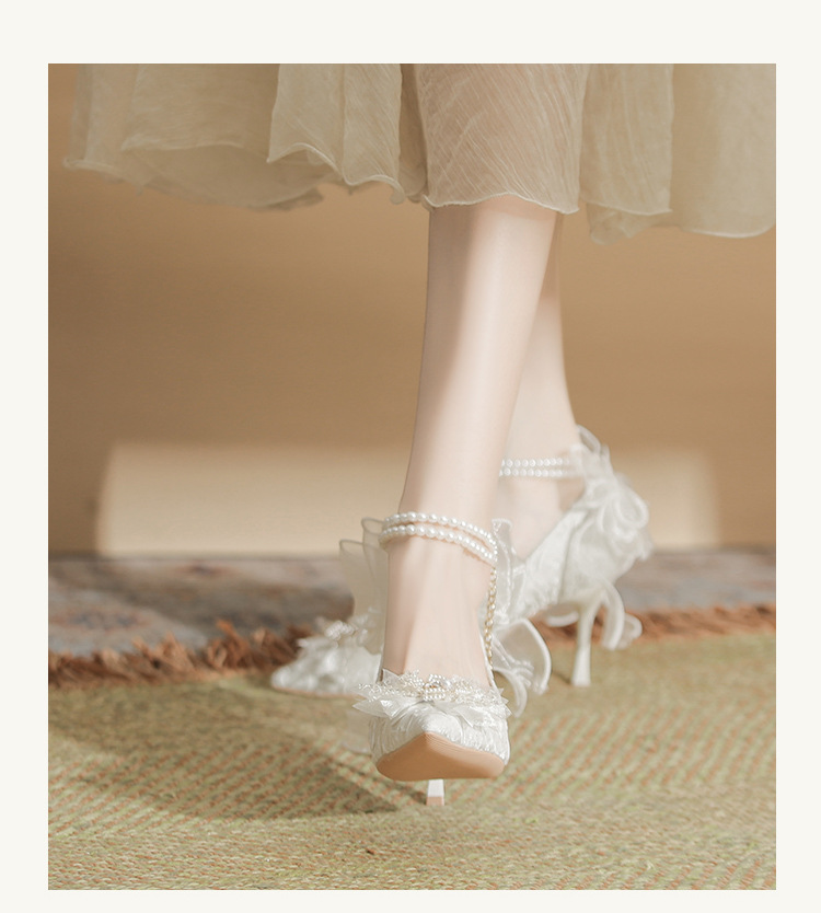 Dzz-z4 프렌치 페어리 하이힐 여성용 스틸레토 힐 데일리웨어 올매치 화이트 신부 신발 웨딩 신발 싱글 레이어 신발스토어 가기