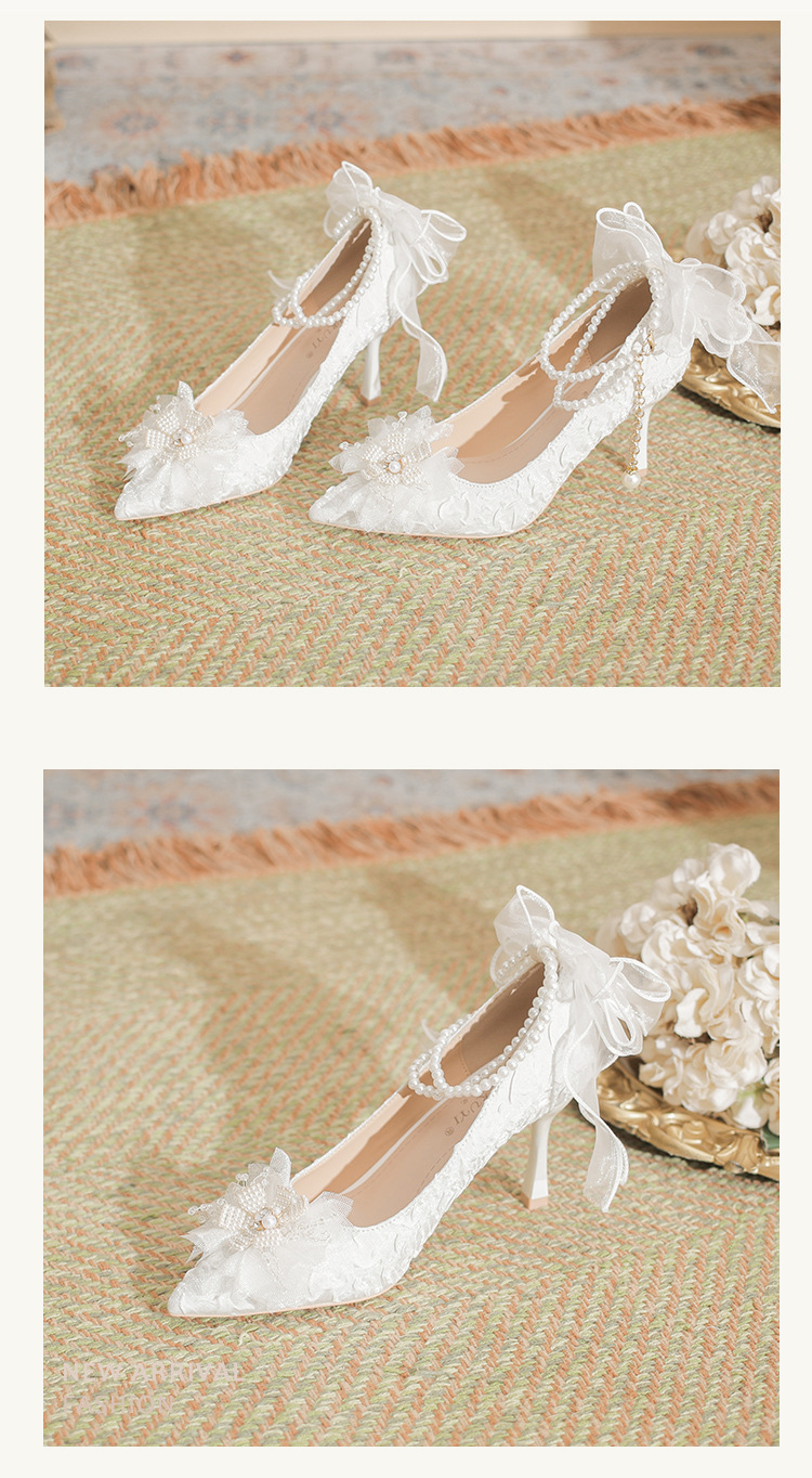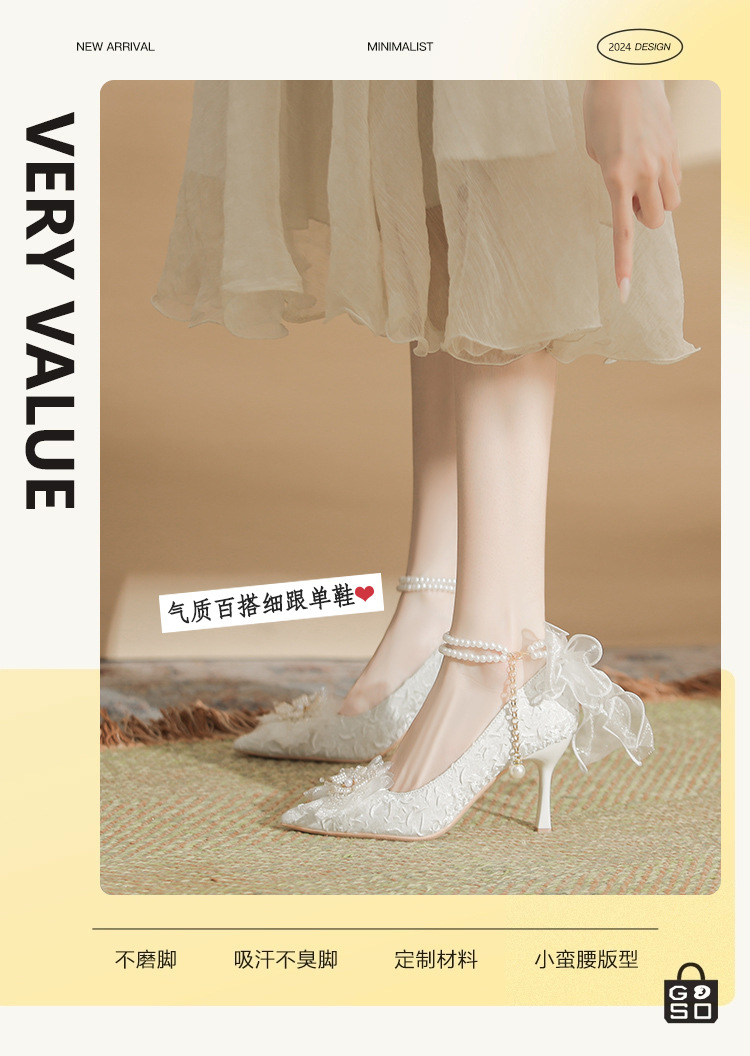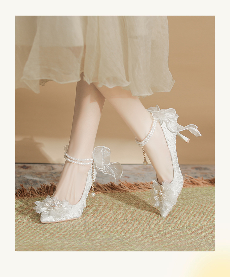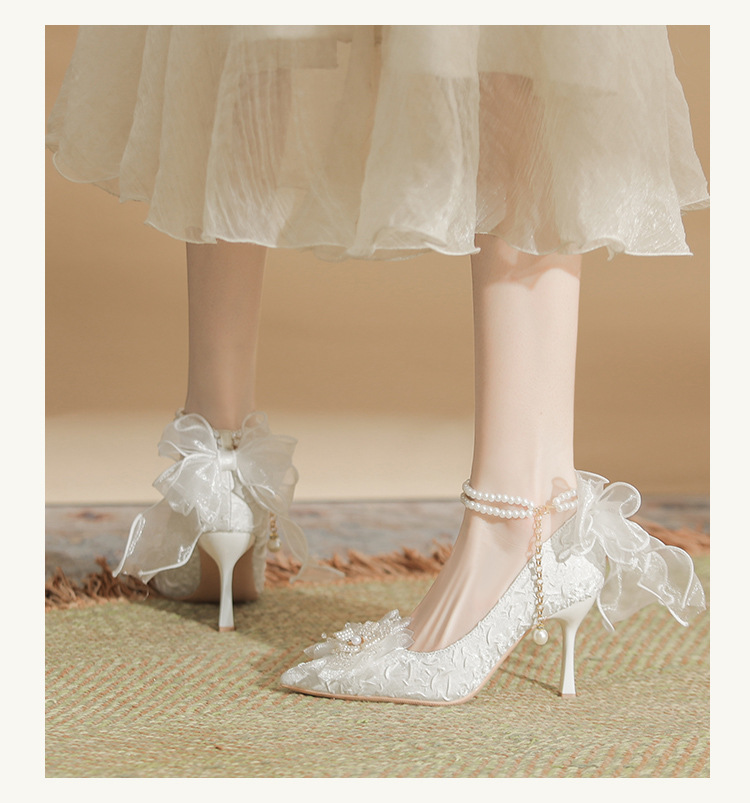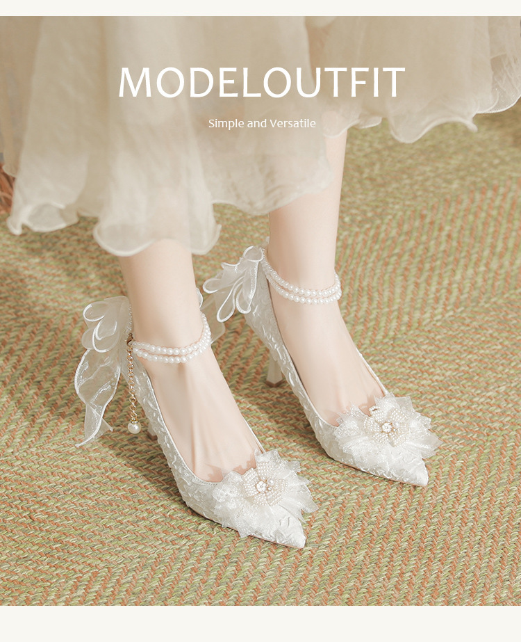 Dzz-z4 프렌치 페어리 하이힐 여성용 스틸레토 힐 데일리웨어 올매치 화이트 신부 신발 웨딩 신발 싱글 레이어 신발스토어 가기