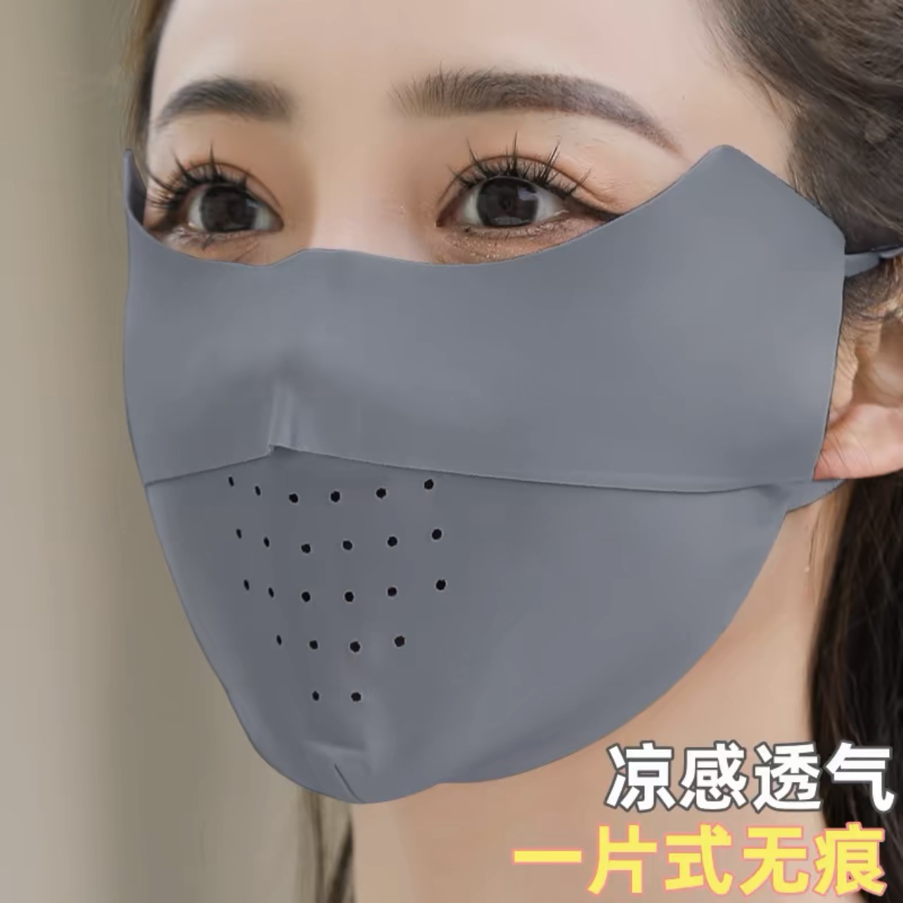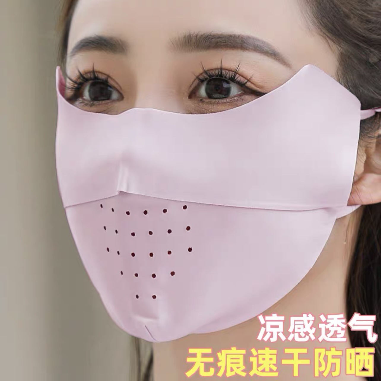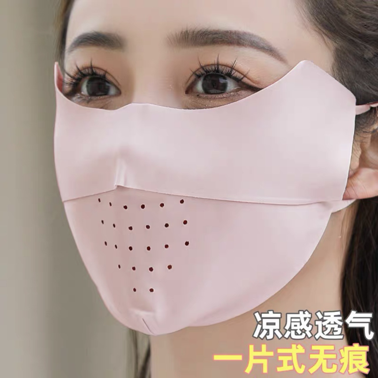 추적없는 태양 마스크 여성의 여름 아이스 실크 마스크 통기성 얇은 안티-UV 보호 전체 얼굴 햇빛 탄성 야외 남성스토어 가기