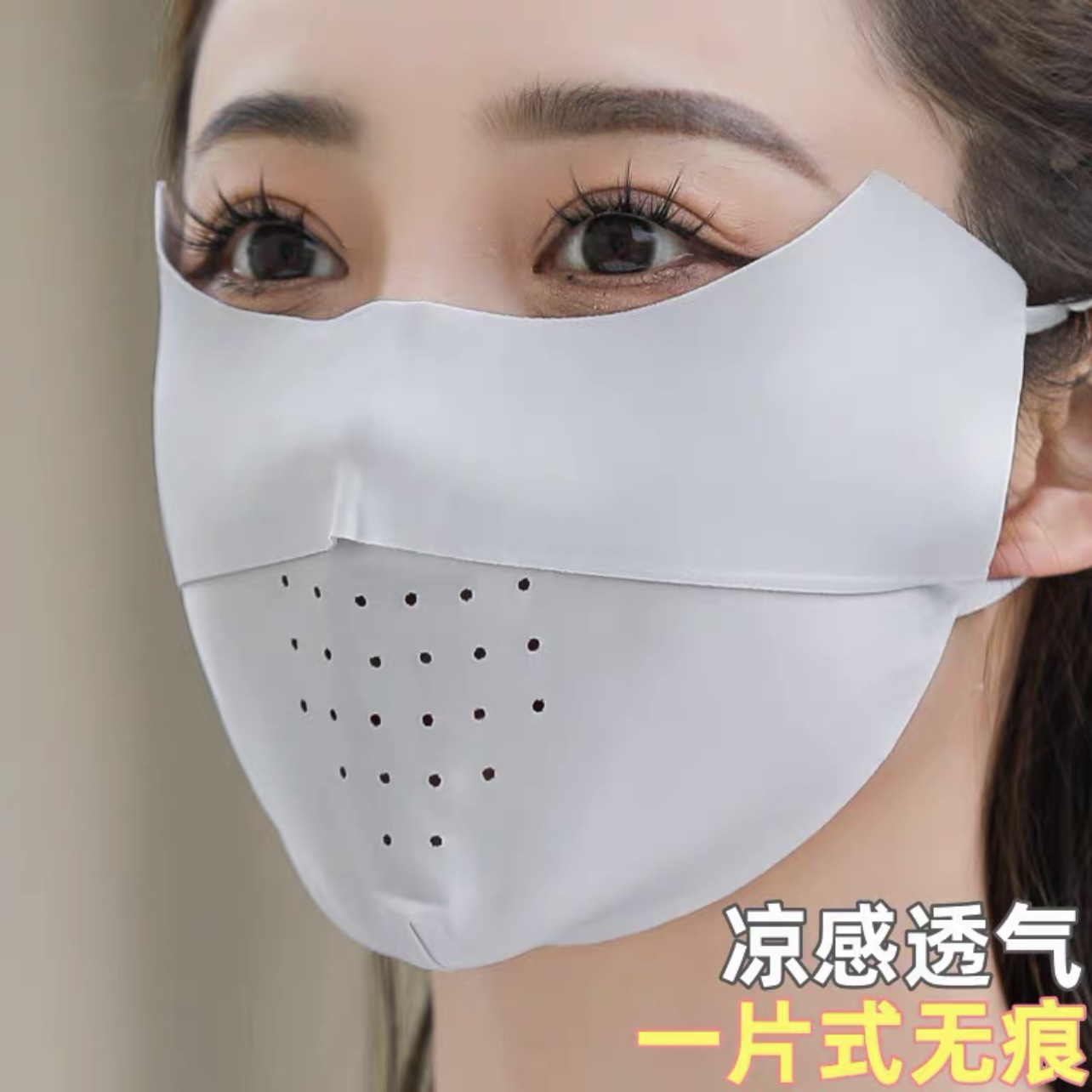 추적없는 태양 마스크 여성의 여름 아이스 실크 마스크 통기성 얇은 안티-UV 보호 전체 얼굴 햇빛 탄성 야외 남성