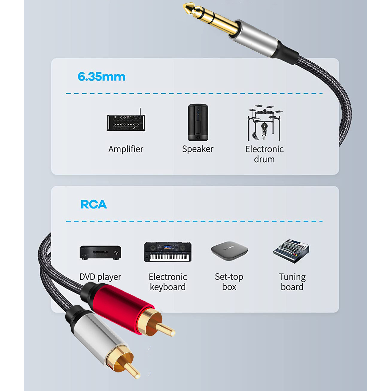 새로운 6.35mm 대형 3코어 스테레오 - 2RCA 기타 오디오 케이블 6.5 - 듀얼 로터스 오디오 케이블스토어 가기