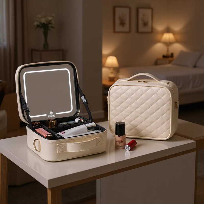 OBOX 높은 색상 가치 대용량 화장품 가방 흑백 파우더 12 인치 하이 퀄리티 조명 거울 화장품 가방 여행 보관 가방