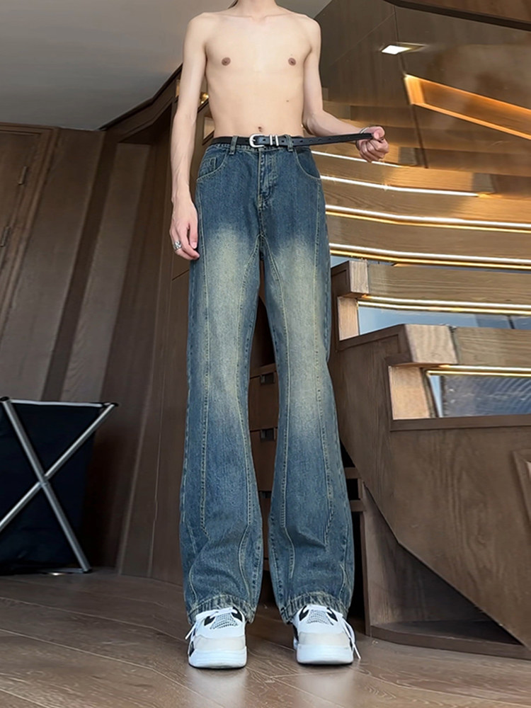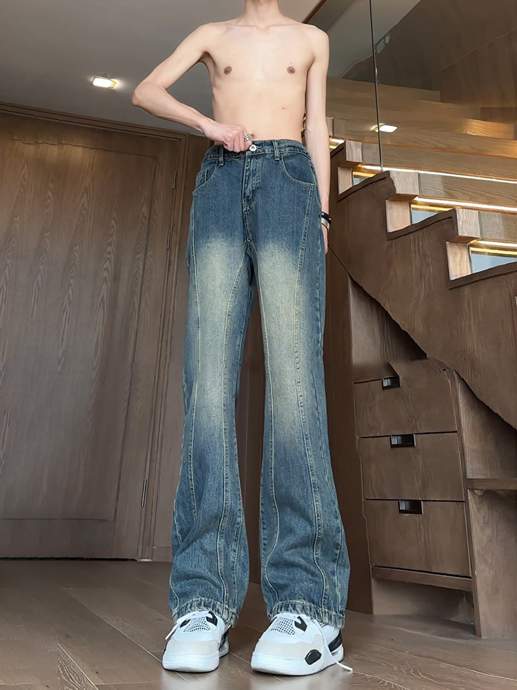 빈티지 블루 Machete 마이크로 청바지 남자의 가을과 겨울 강아지 잘 생긴 고급 바지 미국식 하이 스트리트 좁은 스트레이트 바지