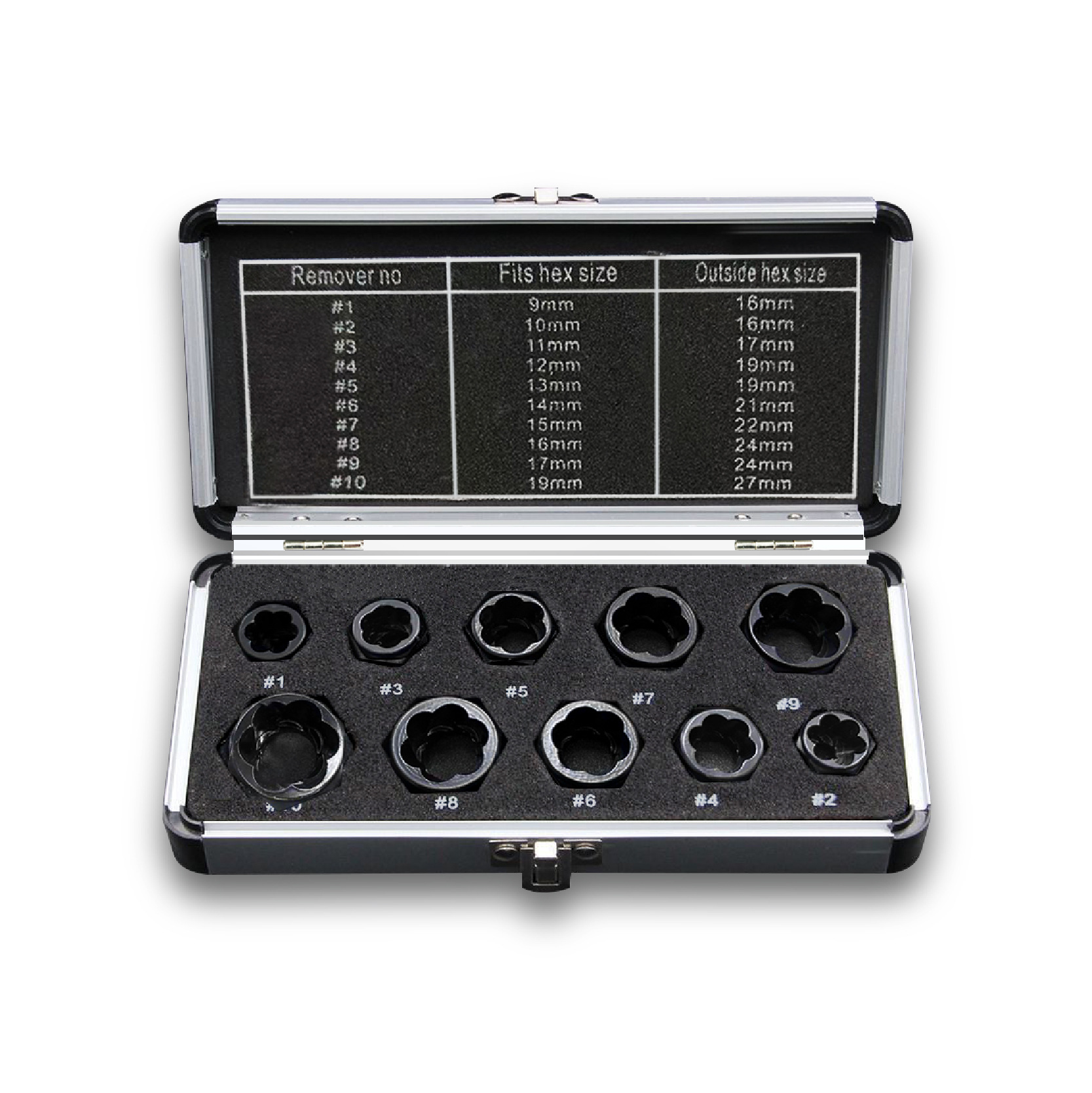• 13개 너트 추출기 샌드블라스팅 세트 [노란색 버클이 달린 플라스틱 상자] 732g