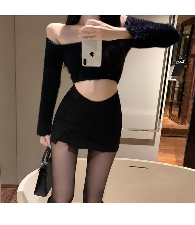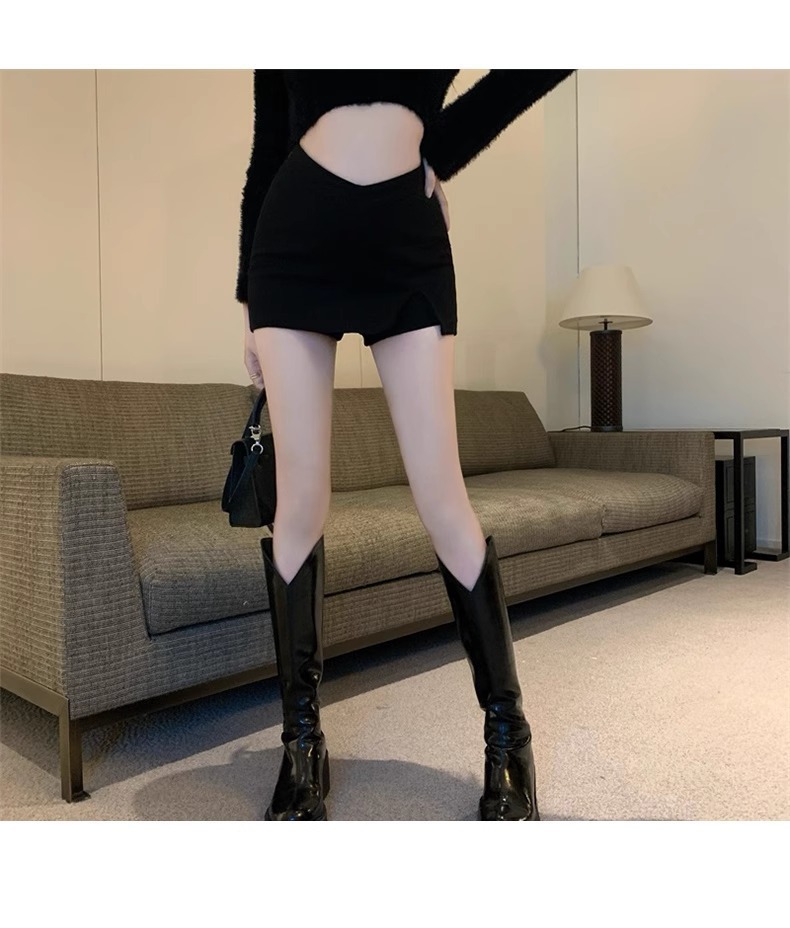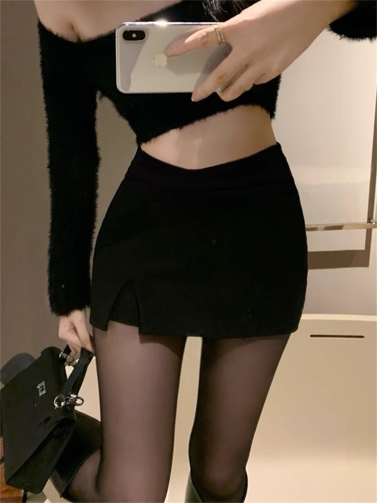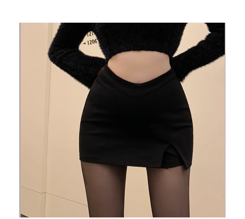 플러스 사이즈 통통녀 분할 엉덩이 스커트 여성의 2024 가을 높은 허리 스파이스 소녀 스커트 단어 유럽과 미국의 V 단어 허리 스커트스토어 가기