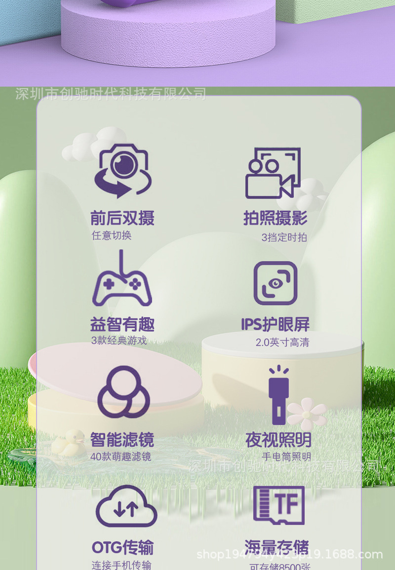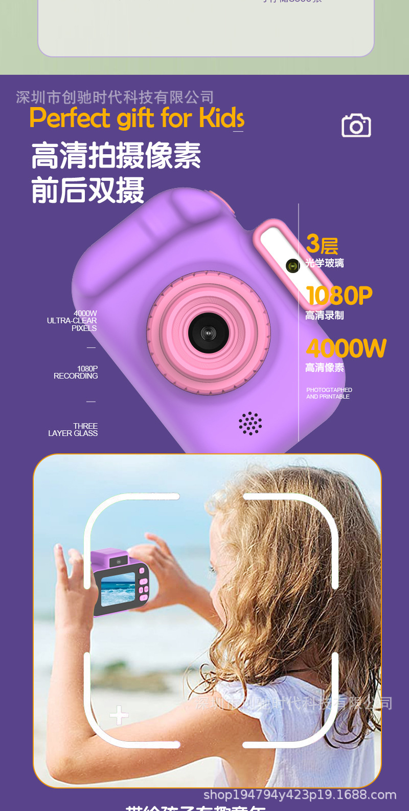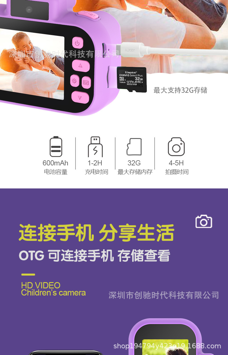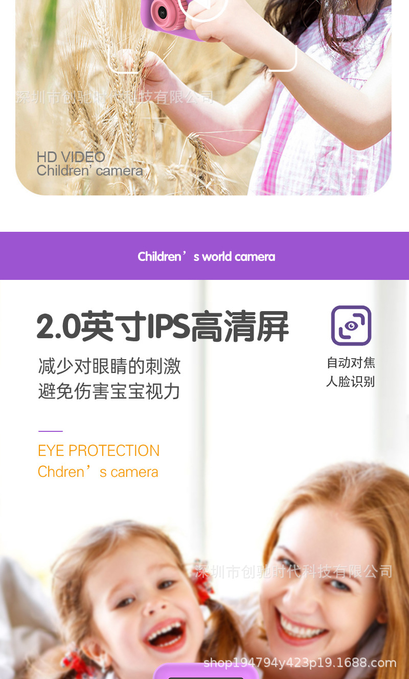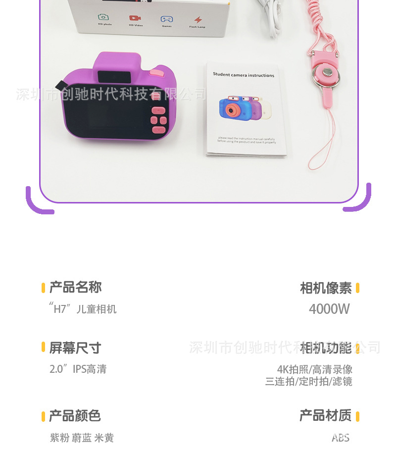 공장 직접 공급 미니 어린이 카메라 휴대용 만화 장난감 전면 및 후면 더블 카메라 남성 및 여성 어린이 선물스토어 가기