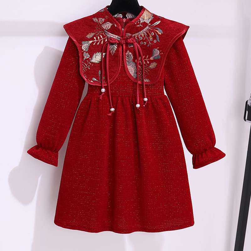 소녀의 세련된 새 구정 원피스 소녀의 가을과 겨울 새로운 중국 스타일 축제 원피스