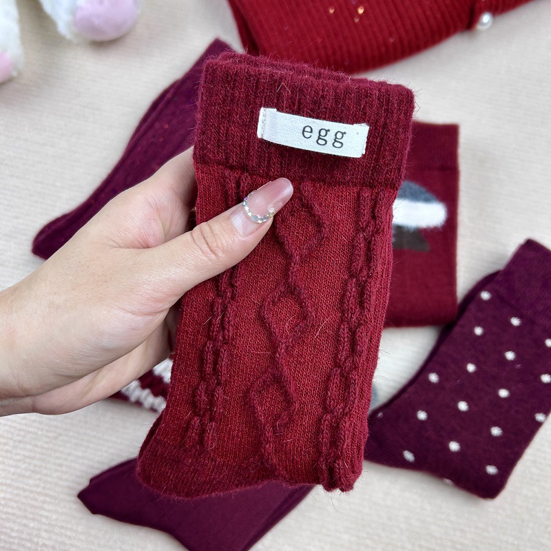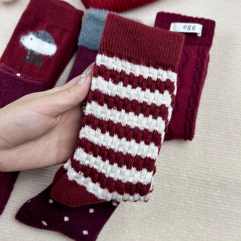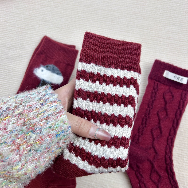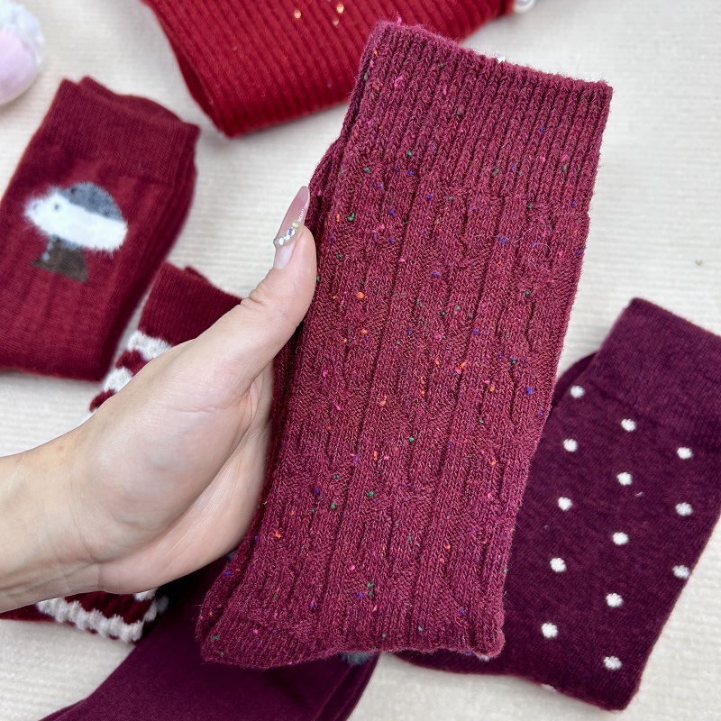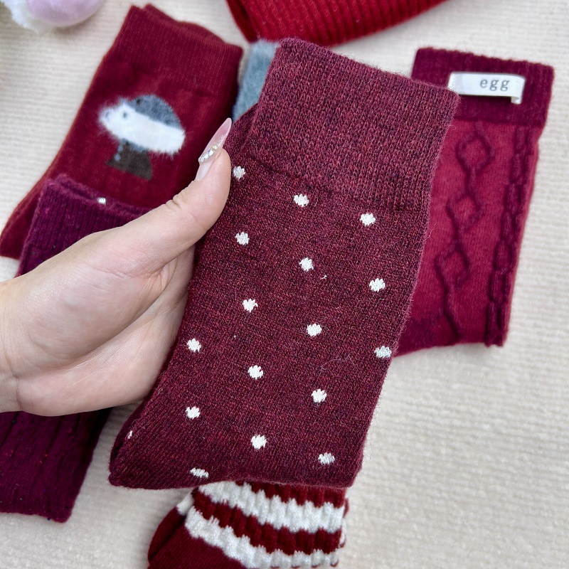 가을과 겨울 붉은 귀여운 튜브 양말 어린이 두꺼운 따뜻한 일본 겨울 양모 대마 패턴 더미 양말