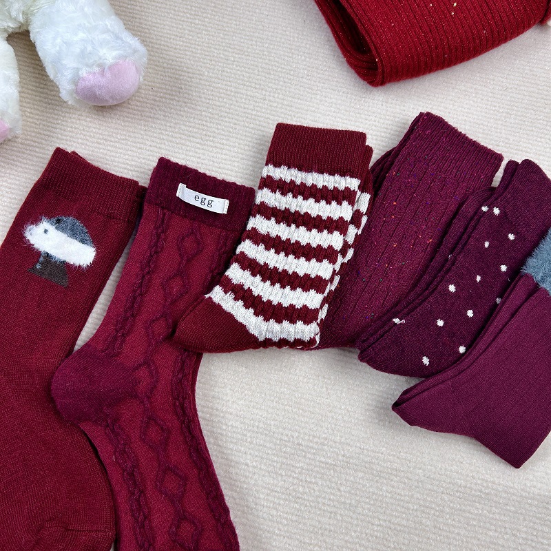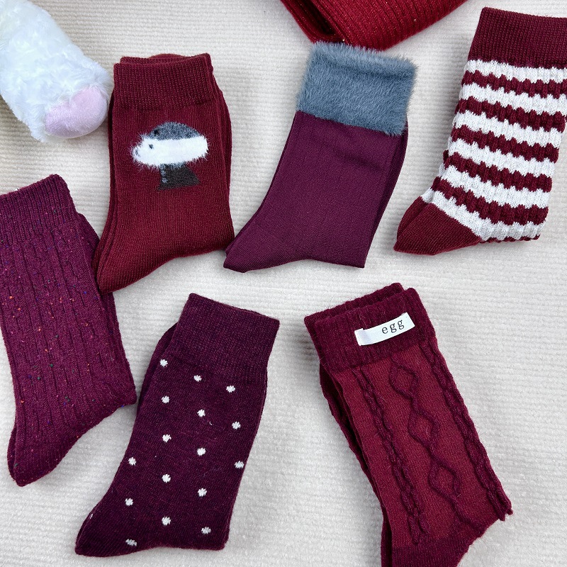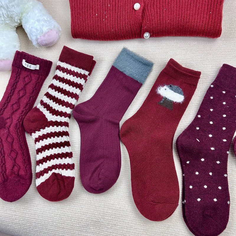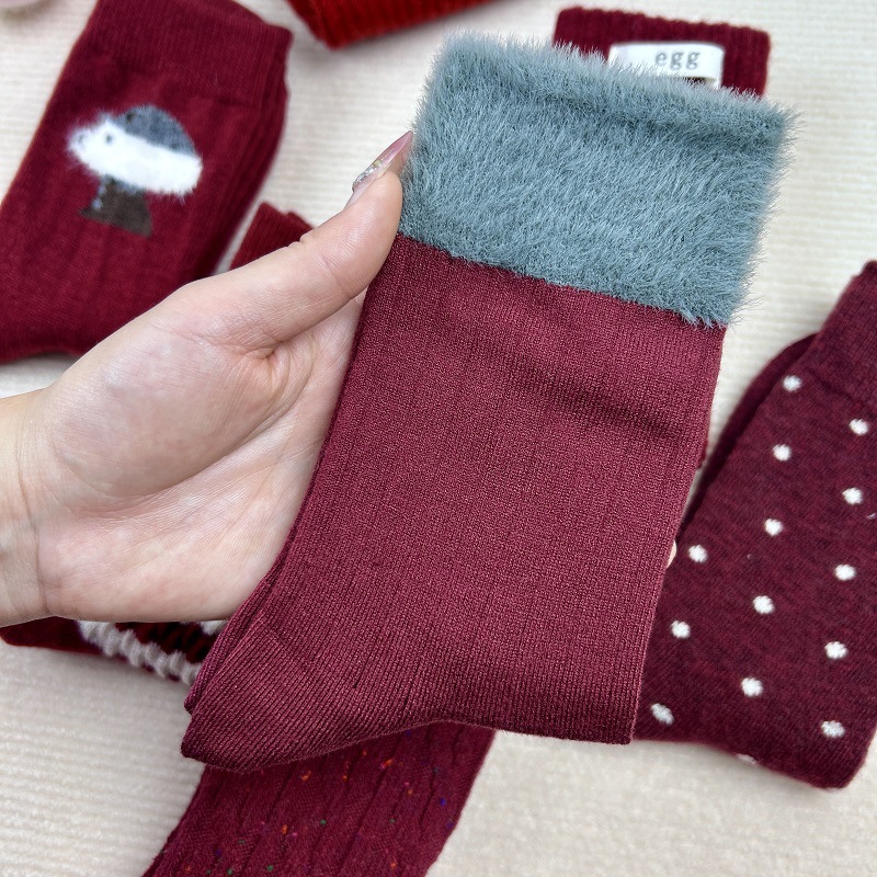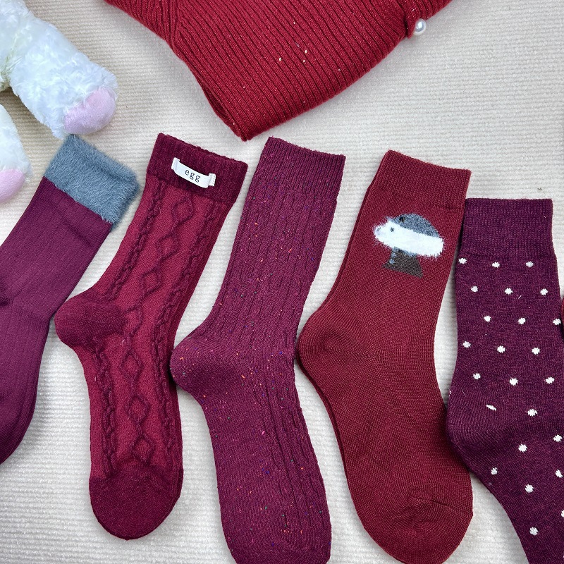 가을과 겨울 붉은 귀여운 튜브 양말 어린이 두꺼운 따뜻한 일본 겨울 양모 대마 패턴 더미 양말