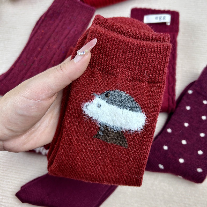 가을과 겨울 붉은 귀여운 튜브 양말 어린이 두꺼운 따뜻한 일본 겨울 양모 대마 패턴 더미 양말스토어 가기