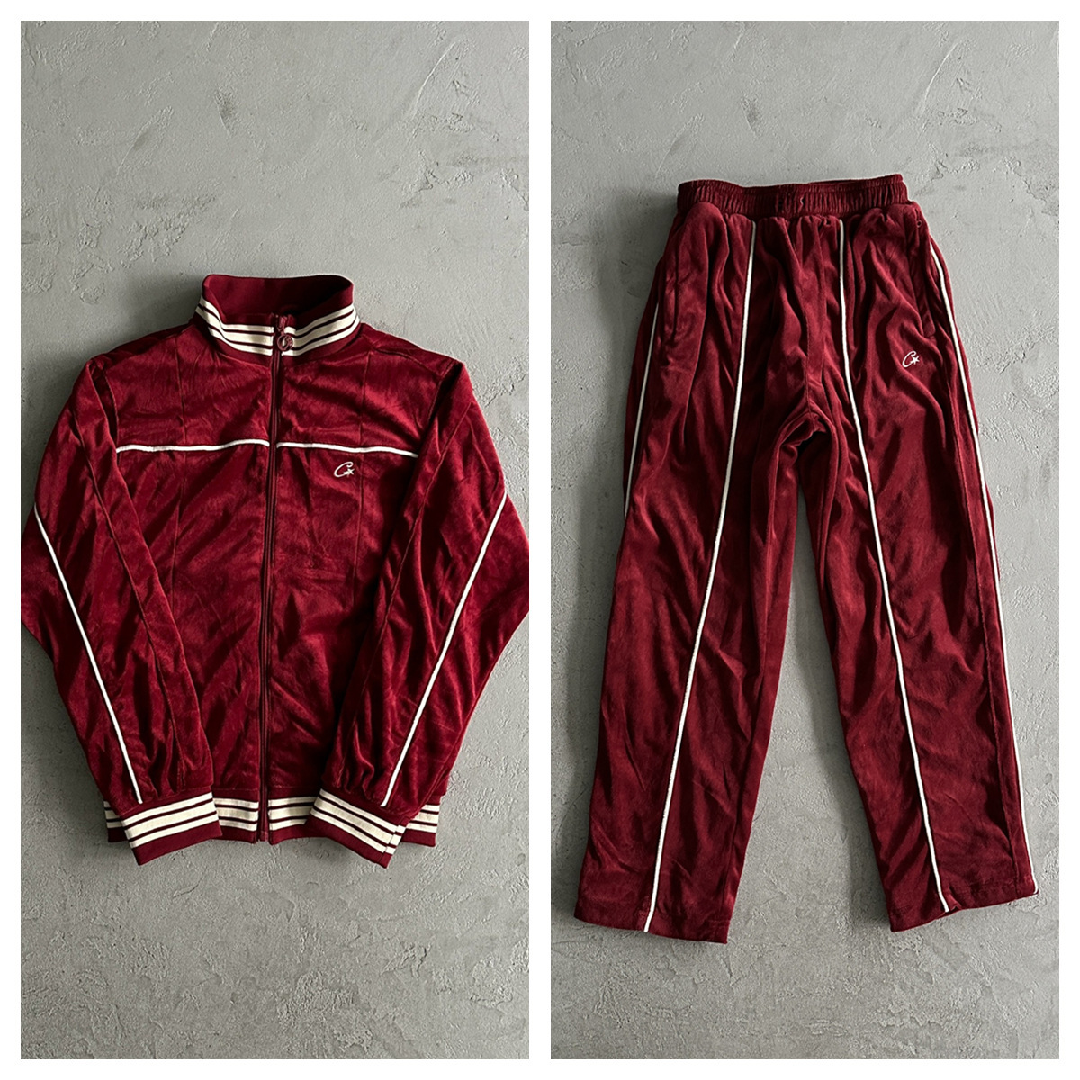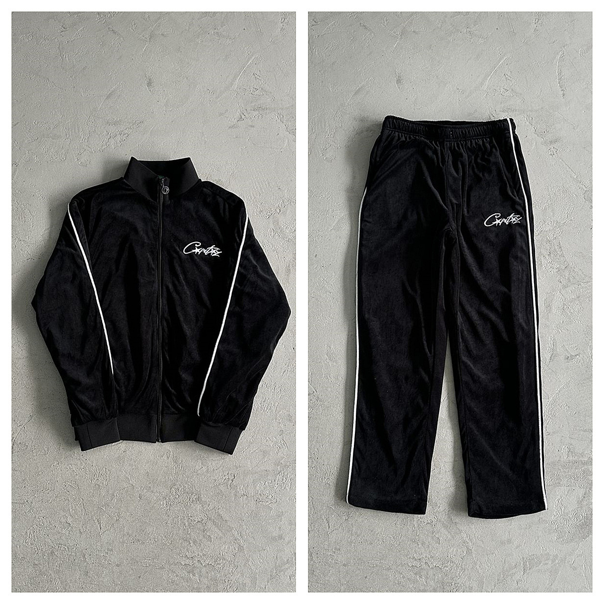 Corteiz 세트 회색 벨벳 스포츠웨어 벨벳 amg 세트 그레이 유로 코드 XS-XXL