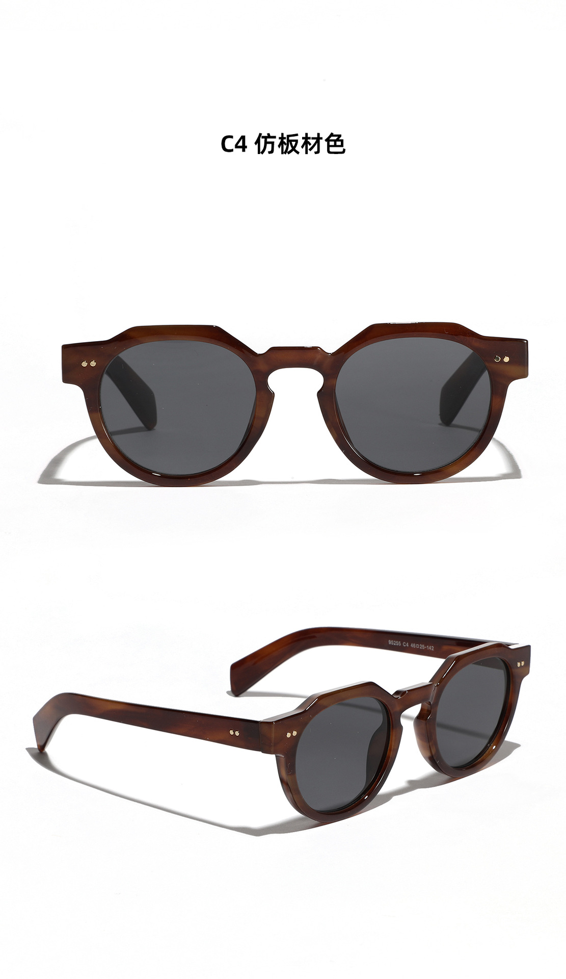 2025 새로운 국경 복고풍 라운드 프레임 쌀 네일 선글라스 여성의 세련된 유럽과 미국의 두꺼운 프레임 선글라스 남성