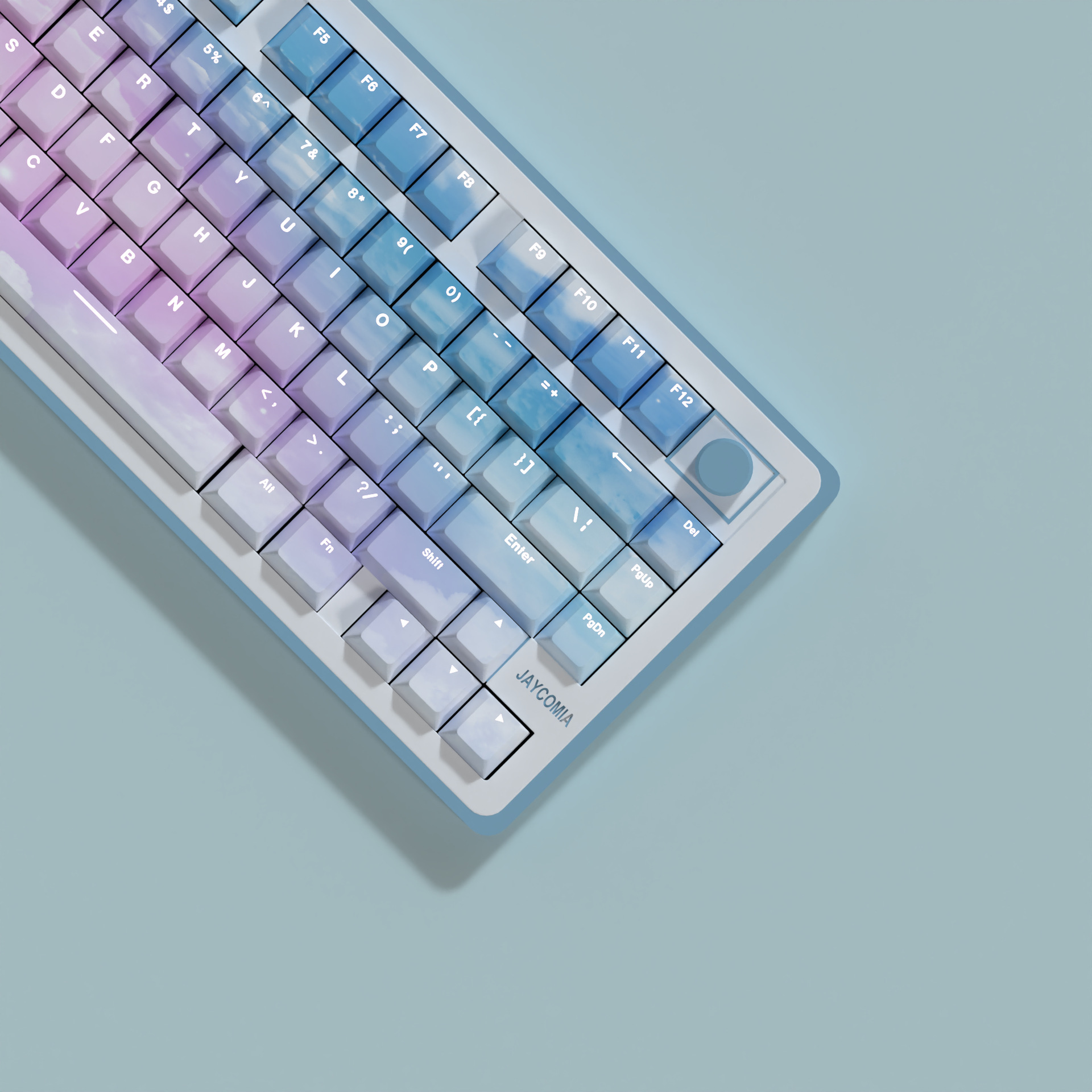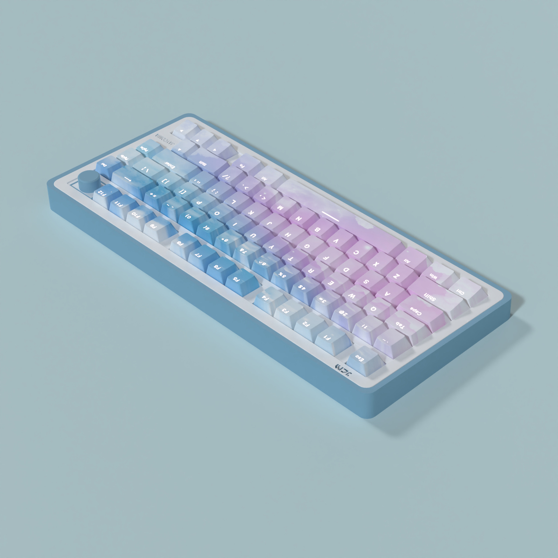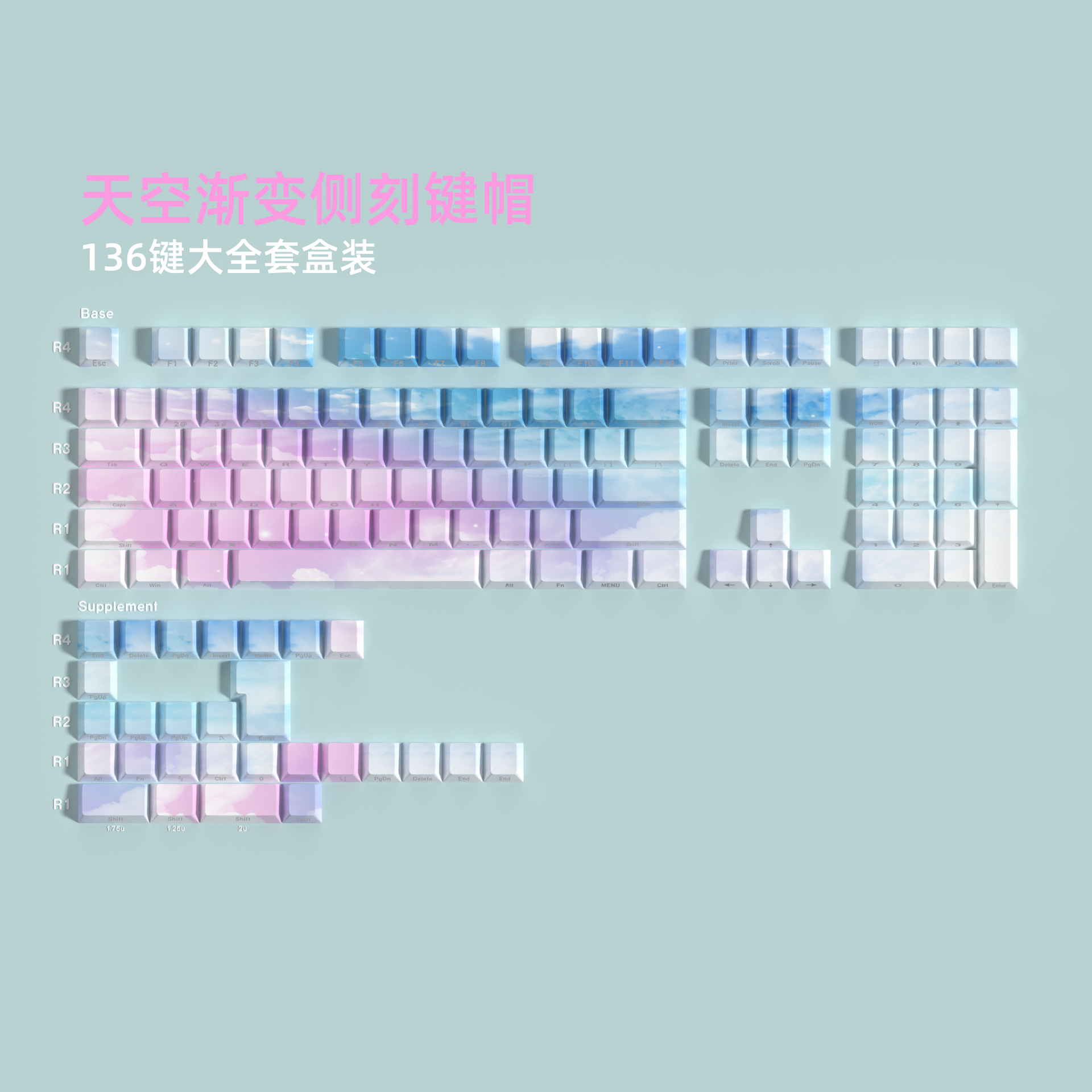 JCM 하늘 그라디언트 키 캡 측면 새겨진 광 전송 캐릭터 132 키 박스 대형 풀 세트 기계식 키보드 캡