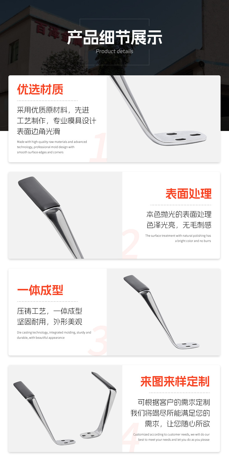 공급 사무실 의자 팔걸이 액세서리 알루미늄 합금 컴퓨터 의자 알루미늄 고정 팔걸이 거울 광택 회전 의자 팔걸이 액세서리