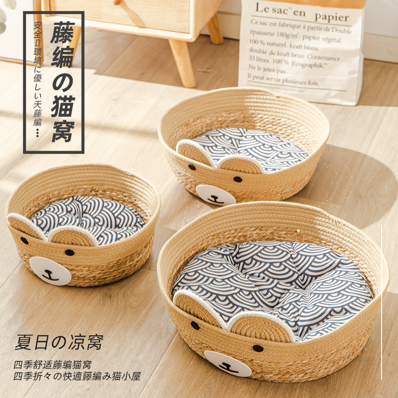 등나무 고양이 둥지 애완 동물 고양이 겨울 따뜻한 잡아 보드 둥지 짚 사육장 사계절 유니버설 통기성 매트 야외 제품