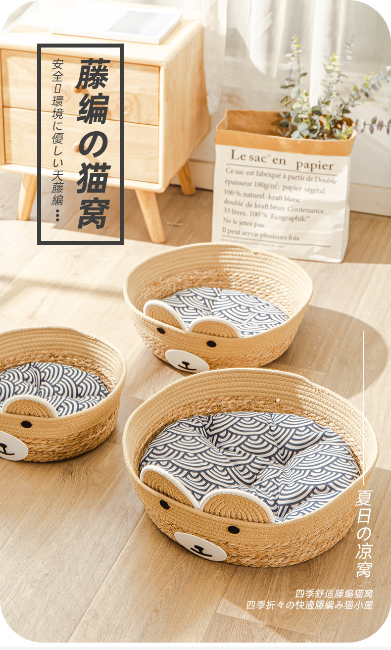 등나무 고양이 둥지 애완 동물 고양이 겨울 따뜻한 잡아 보드 둥지 짚 사육장 사계절 유니버설 통기성 매트 야외 제품스토어 가기