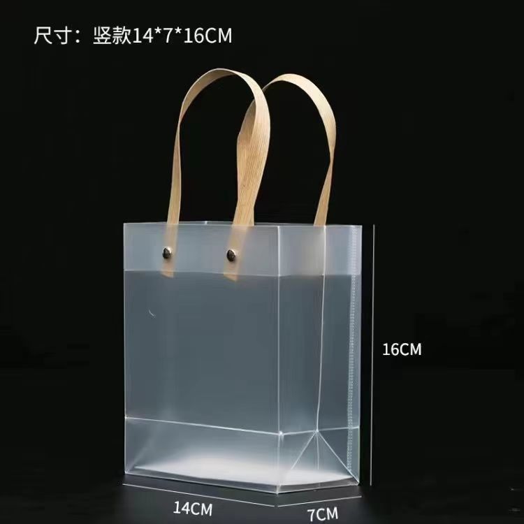 • 한분(리본+라피아+태그) + 반투명 투명 핸드백 태그, PP, 중사각형 [높이 20 폭 10 길이 20] cm