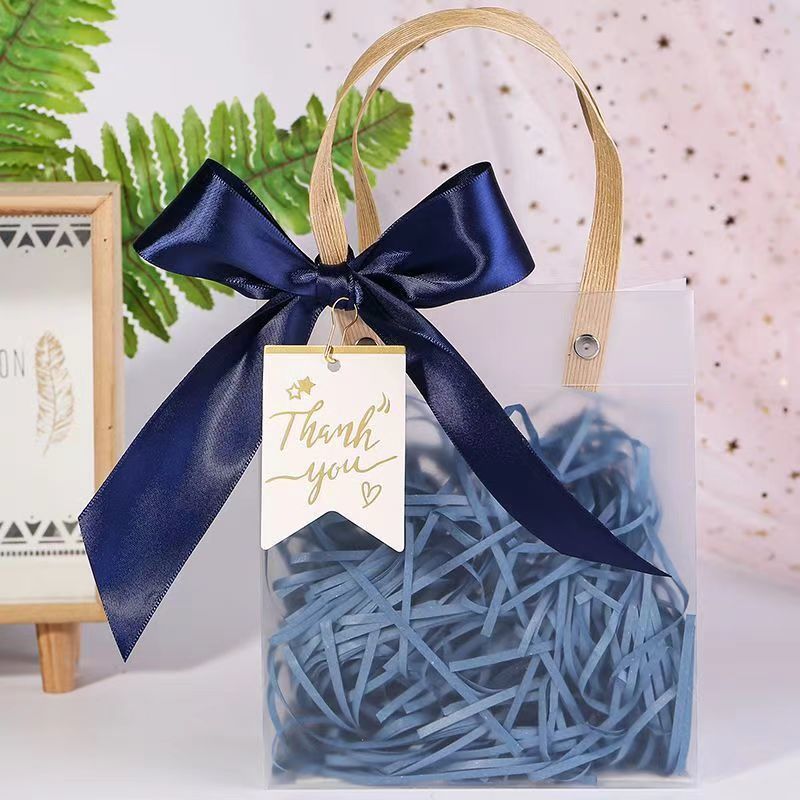 • 스카이블루(리본+라피아+태그) + 반투명 투명 핸드백, PP, 대형 [높이 25 폭 9 길이 22] cm