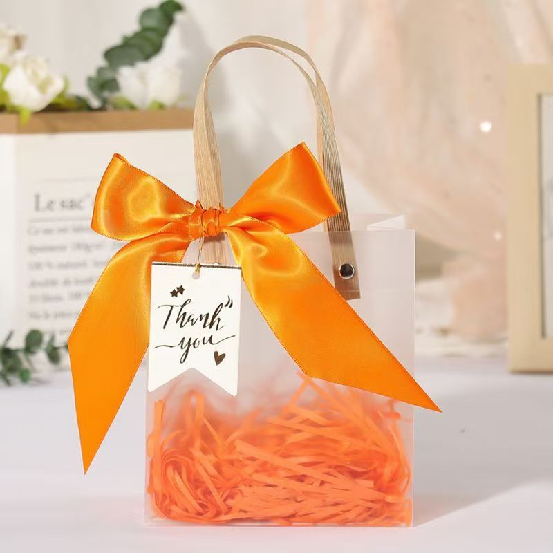 • 오렌지(리본+라피아+태그) + 반투명 투명 핸드백, PP, S 사이즈 [높이 16 폭 7 길이 14] cm