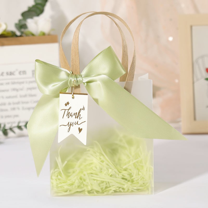 • 라이트 그린(리본+라피아+태그) + 반투명 투명 핸드백, PP, 중간 정사각형 [높이 20 폭 10 길이 20] cm