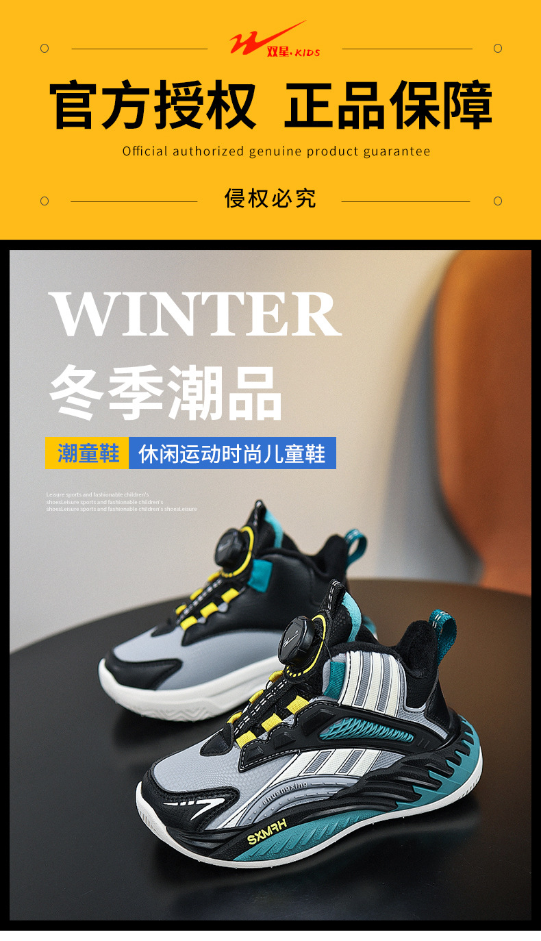 더블 스타 남학생 코튼 신발 가을/겨울 새로운 미끄럼 방지 아동화 소녀 기모 브랜드 운동화 15128-1