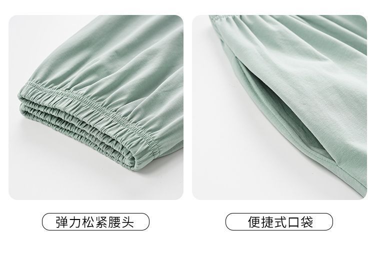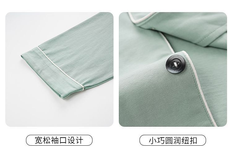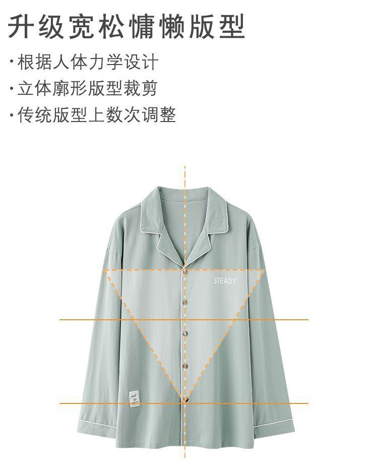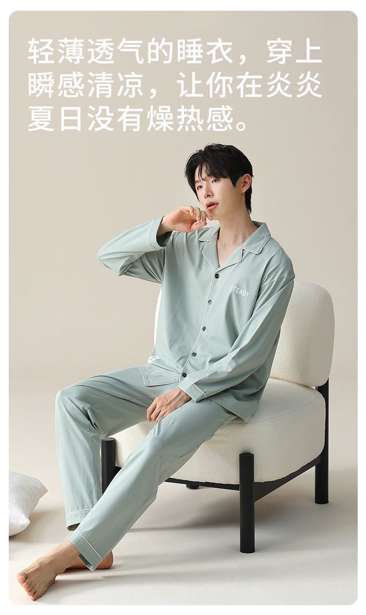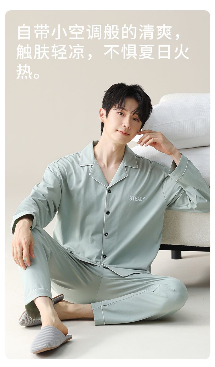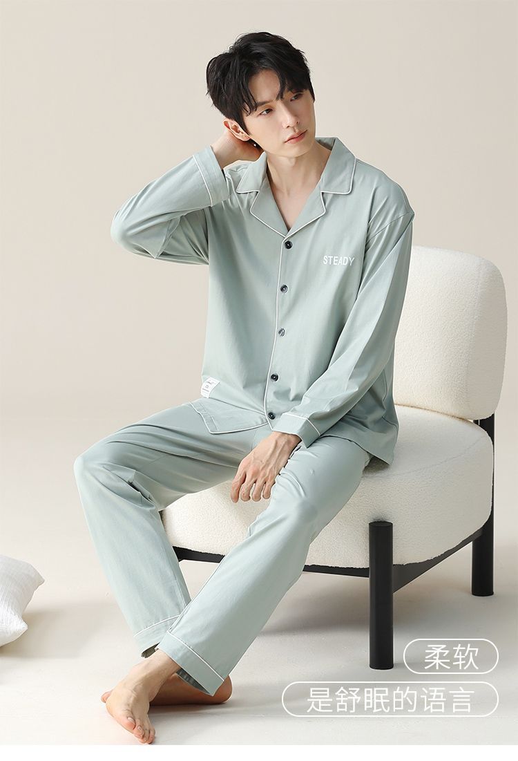 순면 잠옷 남자의 봄과 가을 얇은 긴 소매 십대 간단한 단색 플러스 사이즈 홈 옷스토어 가기