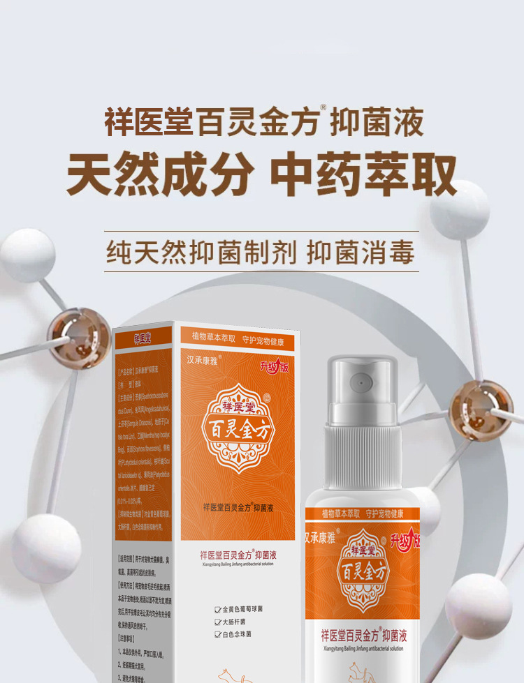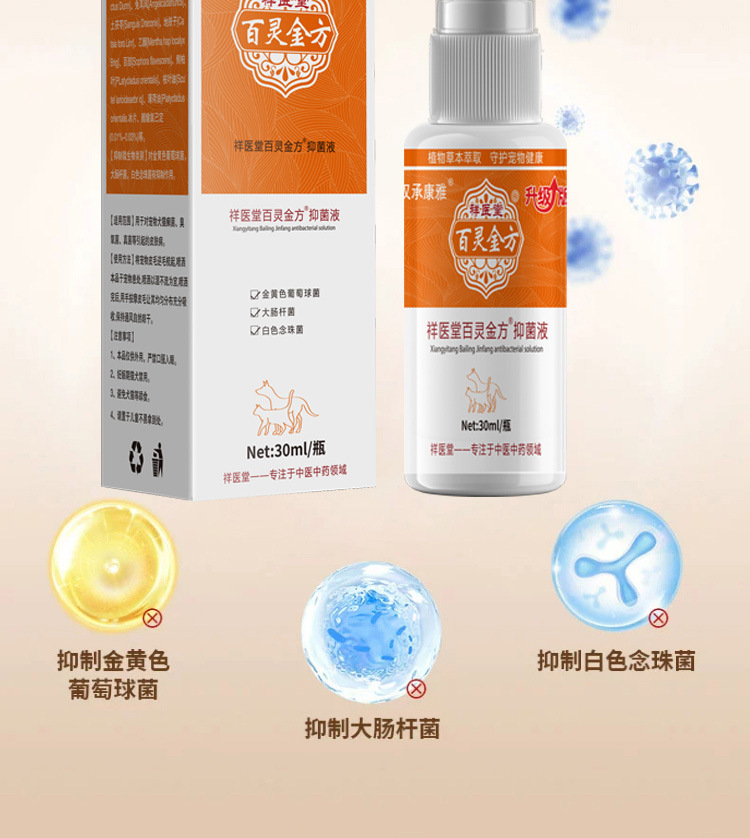 Xiangyitang Bailing Jinfang 항균 액체 연고는 고양이와 개를 소독합니다 유니버설 발가락 스프레이 애완 동물 Lingchuang 연고스토어 가기
